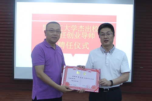 会后,与会人员前往学生科技文化创业园参观考察。在创业园多功能厅,陈文远副校长代表学校向校友企业家颁发了HG8088皇冠创业导师聘任证书。