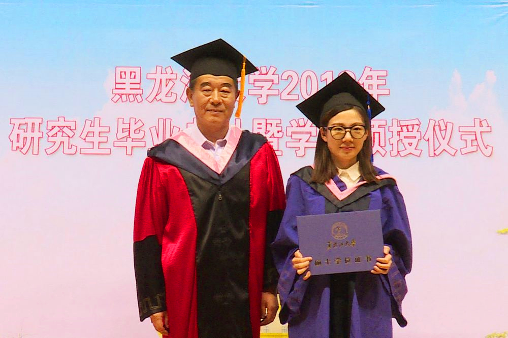 2018届国际文化教育学院毕业生、来自乌克兰的林妮娜代表留学生毕业生发言。她回顾了五年的大学生活,感谢黑大留给她的知识、经验和友谊,并深情表示,无论未来走到哪里,都会记住这里难忘的回忆、珍惜在黑大的美好回忆。