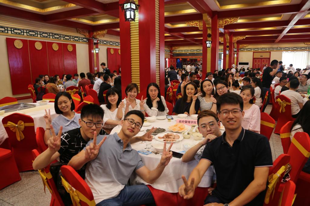 此刻,所有人举杯,敬这场盛宴,敬这次离别,敬四年同窗。各学院高喊四年里早已烂熟于心的院训,此起彼伏,声音里饱含深情,深藏留恋。本次宴会正式开始。