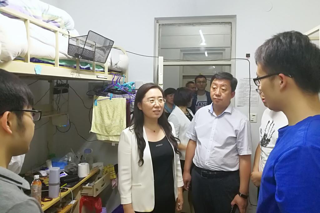 在各公寓值班室,丁书记看望了一直坚守在毕业生离校值班第一线的全体学生政工干部,并与他们亲切交谈,详细了解毕业生离校的工作动态。她指出,在学校各相关部门特别是全体学生政工干部的共同努力下,目前离校氛围很好,毕业生思想稳定,校园秩序井然,这与前期大家细致的思想教育、“上车饺子”等温情服务、加强值班值宿等卓有成效的工作密不可分。她强调,从现在开始毕业生就要陆续离校,大家在白天做好相关工作的前提下,要克服困难,再接再厉,充分利用晚上值班的时间多深入学生中去,了解和把握好毕业生思想动态,有针对性地做好引导和服务工作,确保实现毕业生平安离校、文明离校、舒心离校。
