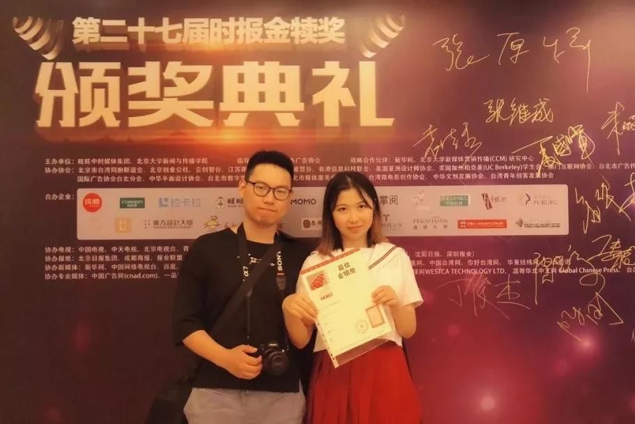 6月28日,第27届“时报金犊奖”颁奖典礼在北京大学举行,由HG8088皇冠新闻传播学院广告学专业教师韩净指导、广告学专业双学位学生雷雯雄(2015级广播电视编导专业)和李锐(2015级英语专业)创作的广告作品《一起陪伴,来自星星的孩子》夺得第27届金犊奖影片类金奖和2018年度最佳金犊奖。这是HG8088皇冠广告学专业继2007年获第16届金犊奖后再次获得金犊奖全场大奖。