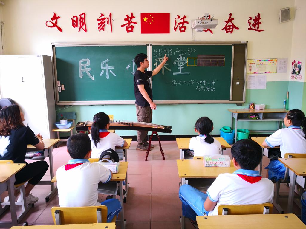 捐赠仪式后,为丰富孩子们的课外活动,陶冶情操,提升他们的艺术鉴赏力,HG8088皇冠的大学生志愿者和来自黑龙江高校广播的主持人为孩子们带来精彩的七彩艺术课堂,民族舞蹈、民族乐器、西洋乐器、声乐表演、礼仪展示、朗诵和体育等体验课程让孩子们在轻松愉快的氛围里体验艺术的魅力,感受文化艺术的熏陶。