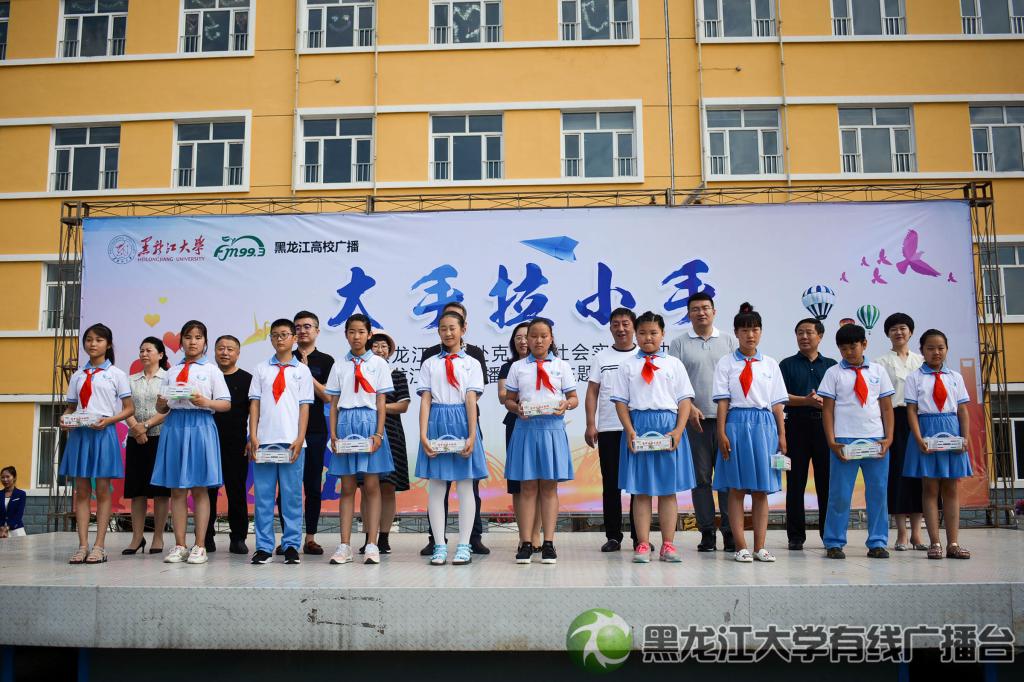 此次活动为了深入学习贯彻习近平新时代中国特色社会主义思想和党的十九大精神,助力我省全面建成小康社会和脱贫攻坚工作,充分发挥大学生传递正能量和新闻媒体宣传报道作用,HG8088皇冠联合黑龙江高校广播来到齐齐哈尔市克东县第三小学,共同开展“大手拉小手”关爱行动。