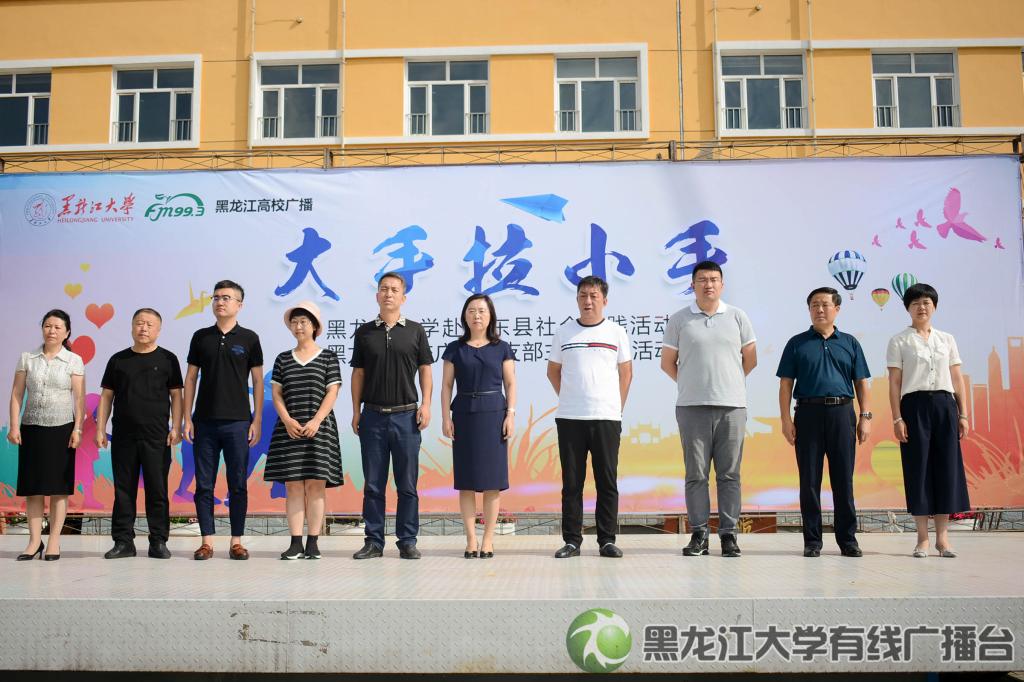 2018年7月16日上午,HG8088皇冠大学生与农村留守儿童“大手拉小手”关爱活动在克东县第三小学举行。校党委副书记丁宏,克东县人民政府副县长孙志民,黑龙江高校广播总监张东新,校党委学工部部长、学生处处长李石,校团委副书记周成刚、张丹,克东县教育局局长史学谦、副局长孙文良、克东县第三小学校长韩秀妍等领导和我校的60余名志愿者及第三小学的孩子们共同参加了此次活动。