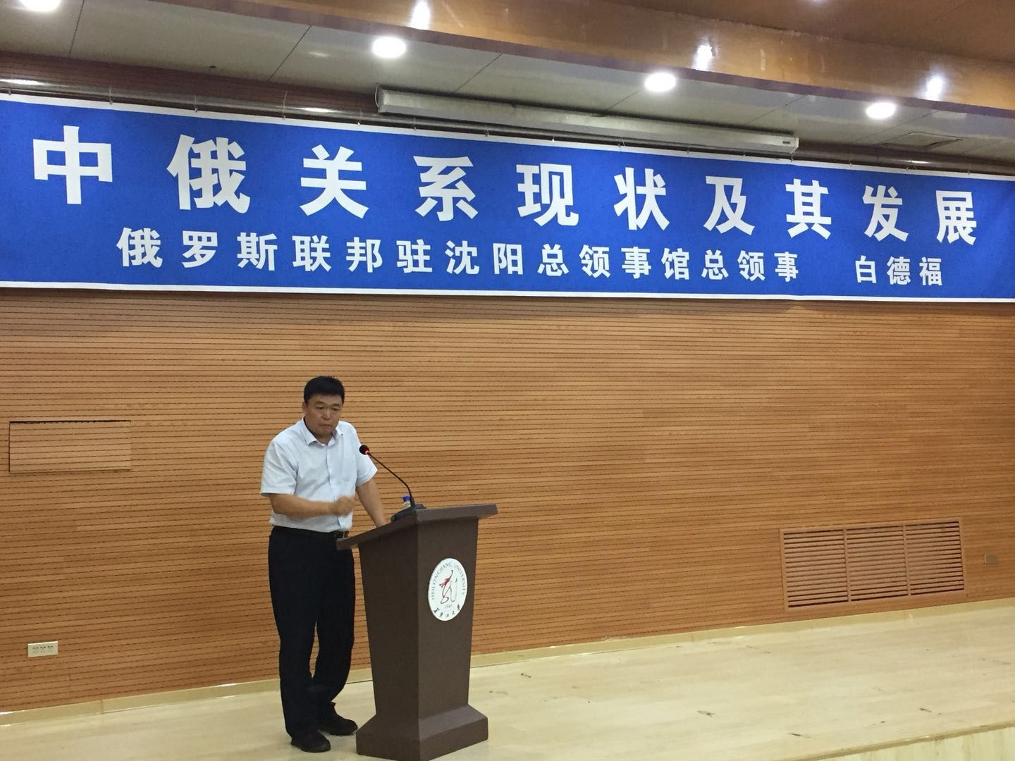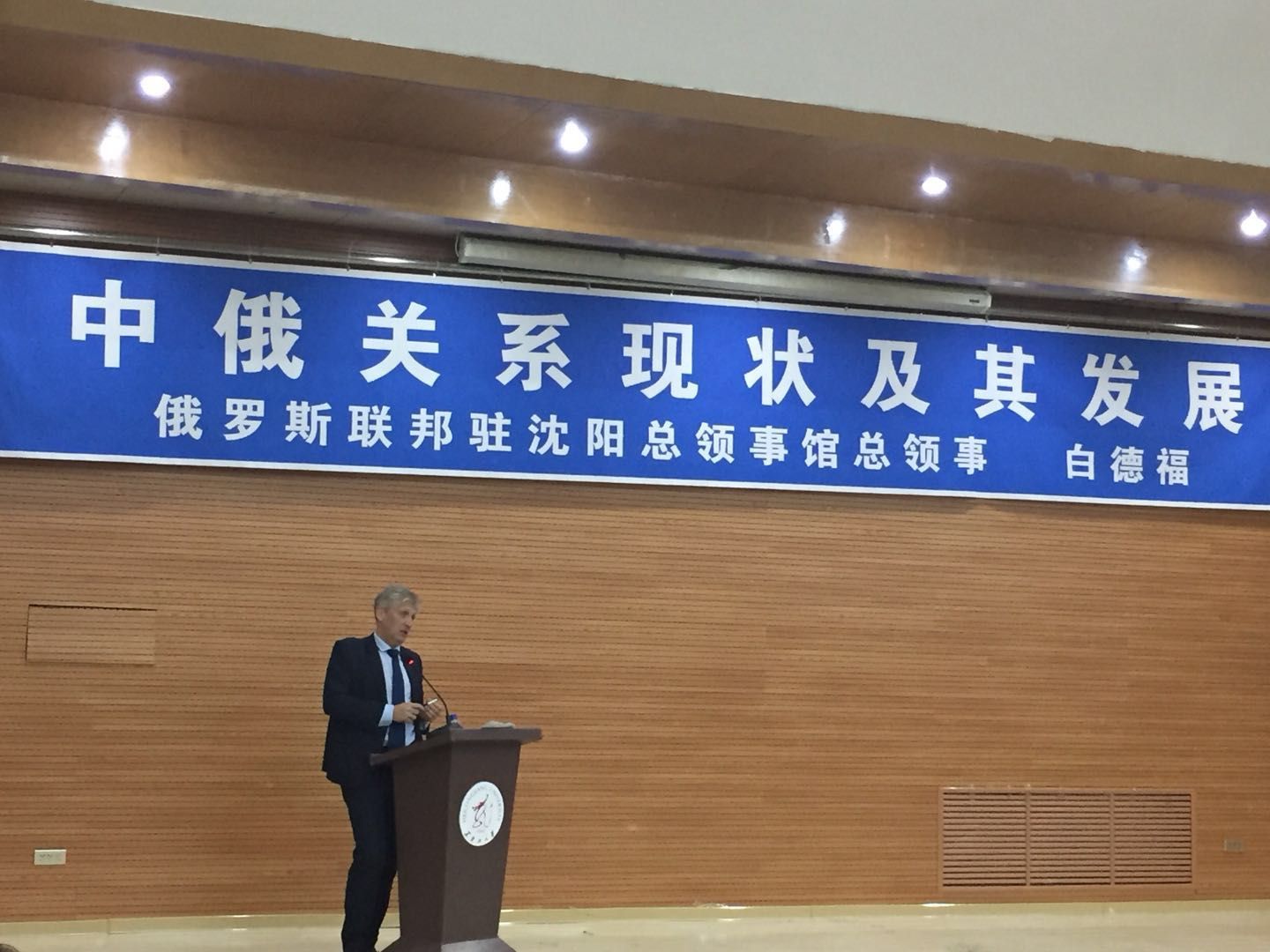 9月4日下午,为积极开展对俄办学交流活动与高级人才战略培养,全面落实中俄战略合作伙伴关系,保证我国外交优先方向的顺利实施,我校特邀俄罗斯联邦驻沈阳领事馆总领事白德福先生来到我校在阳光讲坛做以“中俄关系现状及其发展”为主题的学术报告。我校副校长严明,国际文化教育学院、俄语学院、中俄学院、俄罗斯研究中心的教师、学生等近200人出席报告会。