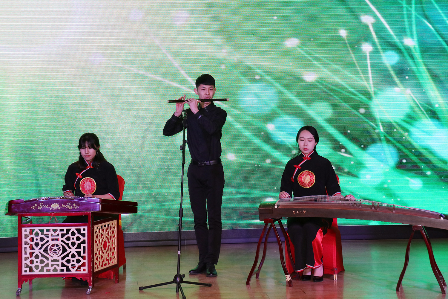 联谊会在民乐三重奏《春到湘江》中拉开序幕,悠扬悦耳旋律为现场观众展现了一幅碧波荡漾、烟雾茫茫的湘江美景,表达了对祖国风光的热爱。诗朗诵《纪念改革开放四十年》,铿锵顿挫的语调,磅礴大气的舞台表现力,向现场观众展现了改革开放40年的壮丽诗篇。具有中国传统文化特色的舞蹈《旗袍秀》、《水乡温柔》,在中国传统文化元素的基础上,融入了现代科技舞台效果,震撼的舞台感染力与视听感觉,博得了现场观众的频频喝彩。女声独唱《芦花》、歌曲《夜上海》、《兄弟想你了》、小合唱《年轻的朋友来相会》、吉他弹唱《不再犹豫》、小提琴独奏《新疆之春》一首首动听的旋律,一次次将现场氛围推向高潮。