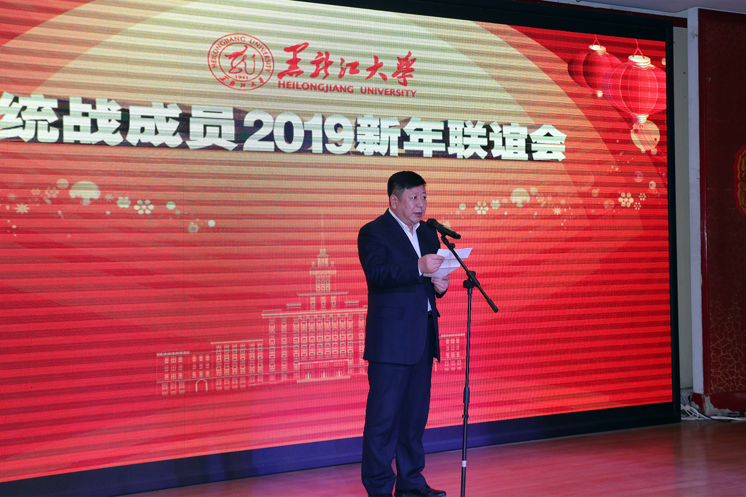12月27日下午,我校统战成员2019年新年联谊会在丽泽园餐厅三楼举办。校党委书记王永清,党委副书记蒋晶洁、丁宏,副校长严明出席活动,学校人大代表、政协委员,民主党派成员,校党外知识分子联谊会会员、侨联会员、欧美同学会会员,以及学校相关职能部门负责人、二级党组织书记、统战工作信息员等150余人参加活动。
