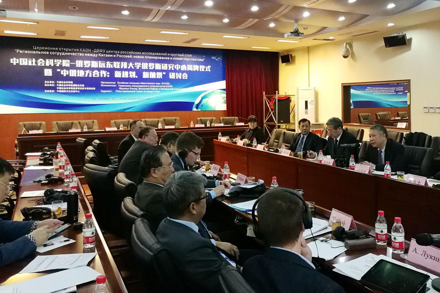 4月1日,中国社会科学院——俄罗斯远东联邦大学俄罗斯研究中心揭牌仪式暨“中俄地方合作:新规划、新前景”研讨会在北京举行。来自中俄两国30余家知名智库、高校的专家学者和媒体记者近80人参加活动。我校付宏刚校长应中国社科院邀请参加揭牌仪式并参加中俄地方合作研讨会。