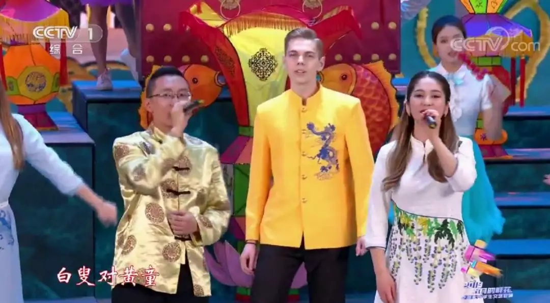 我校国际文化教育学院18名俄罗斯留学生参演情景表演唱《中国话》,向全国观众展现了我校鲜明的对俄办学特色。
