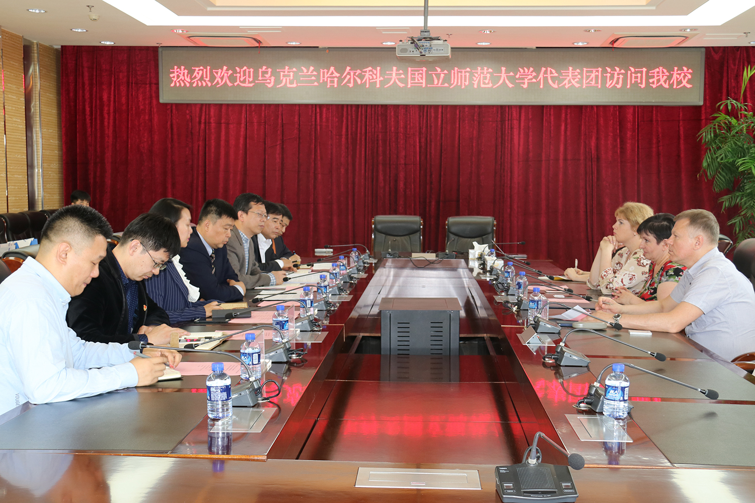 5月28日下午,乌克兰哈尔科夫国立师范大学代表团一行赴我校参观访问并于主楼8楼会议室交流座谈。我校副校长严明、俄语学院、教务处、国际合作与交流处相关负责人出席座谈会,座谈会由我校俄语学院院长孙超主持。