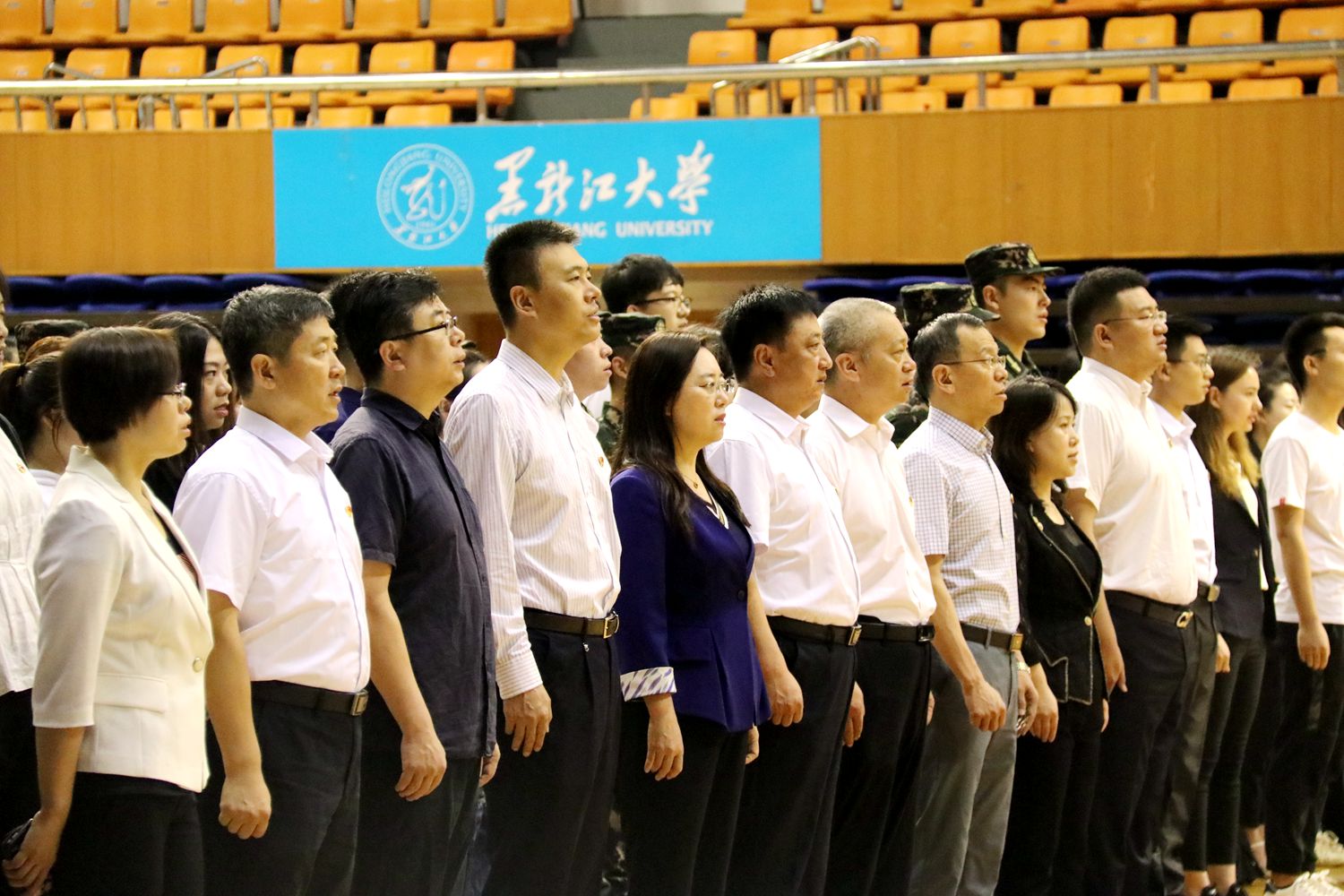 98年,风雨兼程;98年,披荆斩棘。为庆祝中国共产党成立98周年,7月1日早,我校在体育馆举行升国旗仪式,共同回顾中国共产党走过的峥嵘岁月,为光荣、伟大的党送去最真挚的问候和祝福。校党委副书记丁宏,副校长张颖春,党委职能部门和各二级党组织负责人、各学院学生党员代表、2019年新发展的全体预备党员参加了升旗仪式。