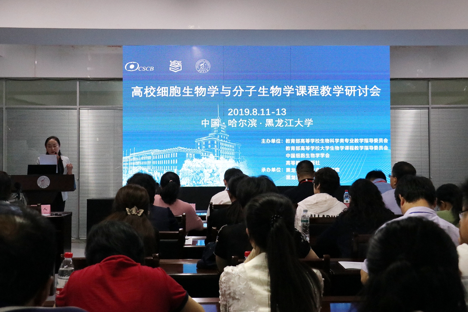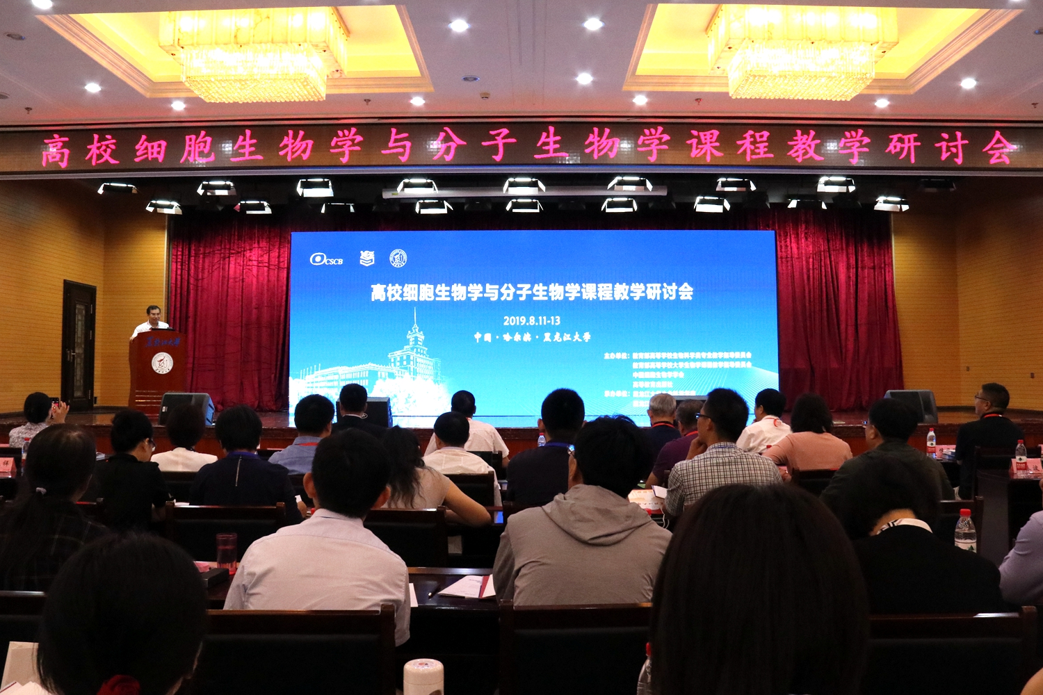 8月12日, 高校细胞生物学与分子生物学课程教学研讨会在我校开幕。本次研讨会由教育部高等学校生物科学类专业教学指导委员会、大学生物学课程教学指导委员会、中国细胞生物学学会、高等教育出版社主办,由我校生命科学学院、黑龙江省蛋白质组学学会承办。中科院院士、武汉大学高等研究院院长朱玉贤,中科院院士、中国细胞生物学会理事长、清华大学教授陈晔光,中国细胞生物学会副理事长、中国电子显微镜学会理事长、北京大学生命科学学院教授丁明孝,高等教育出版社生命科学与医学事业部主任吴雪梅,我校副校长严明,教务处、生命科学学院等相关负责人出席开幕式,来自全国近90所高校的200余名细胞生物学和分子生物学教学一线的专家、代表及我校的老师和同学参加了开幕式。中国细胞生物学学会继续教育工作委员会、北京大学陈建国教授主持开幕式。