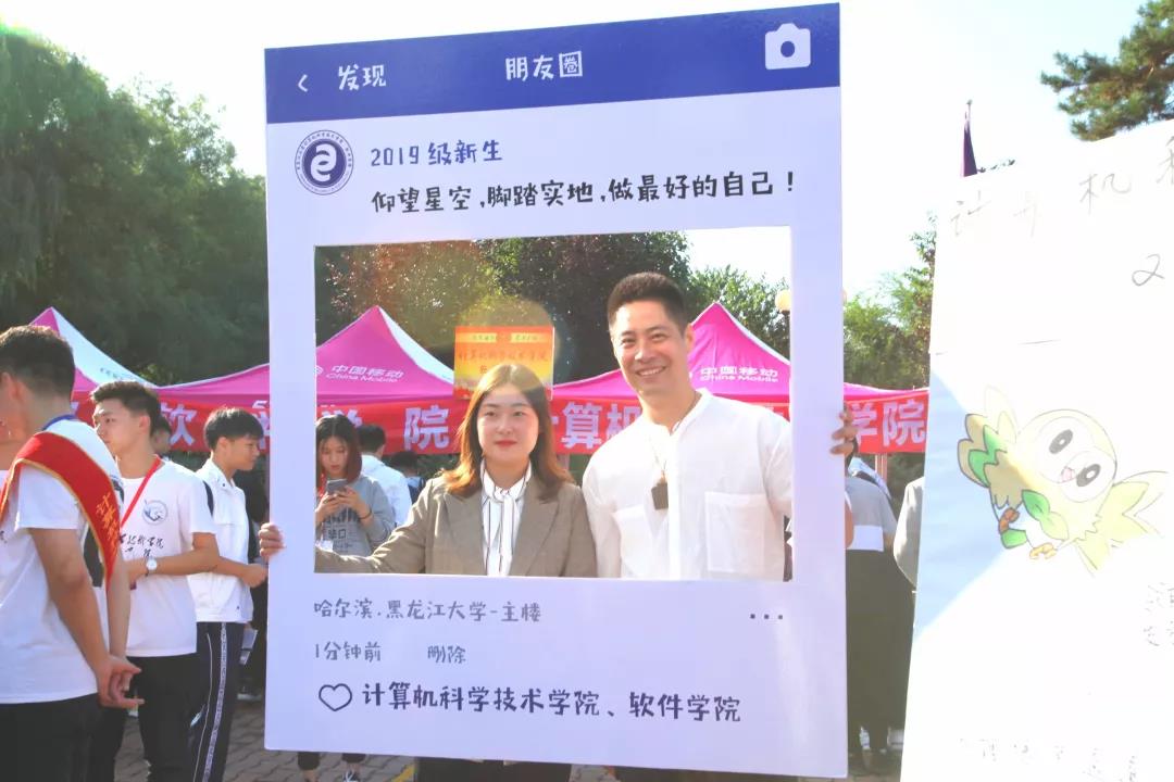 学校还特意为新生们制作了两个带有校训和校徽标识的拍照打卡地。印有“2019新同学”“为你打call”“HG8088皇冠”“博学慎思参天尽物”等字样的拍照背景板和手持标语深受学生喜欢,大家纷纷在这里留下纪念照。