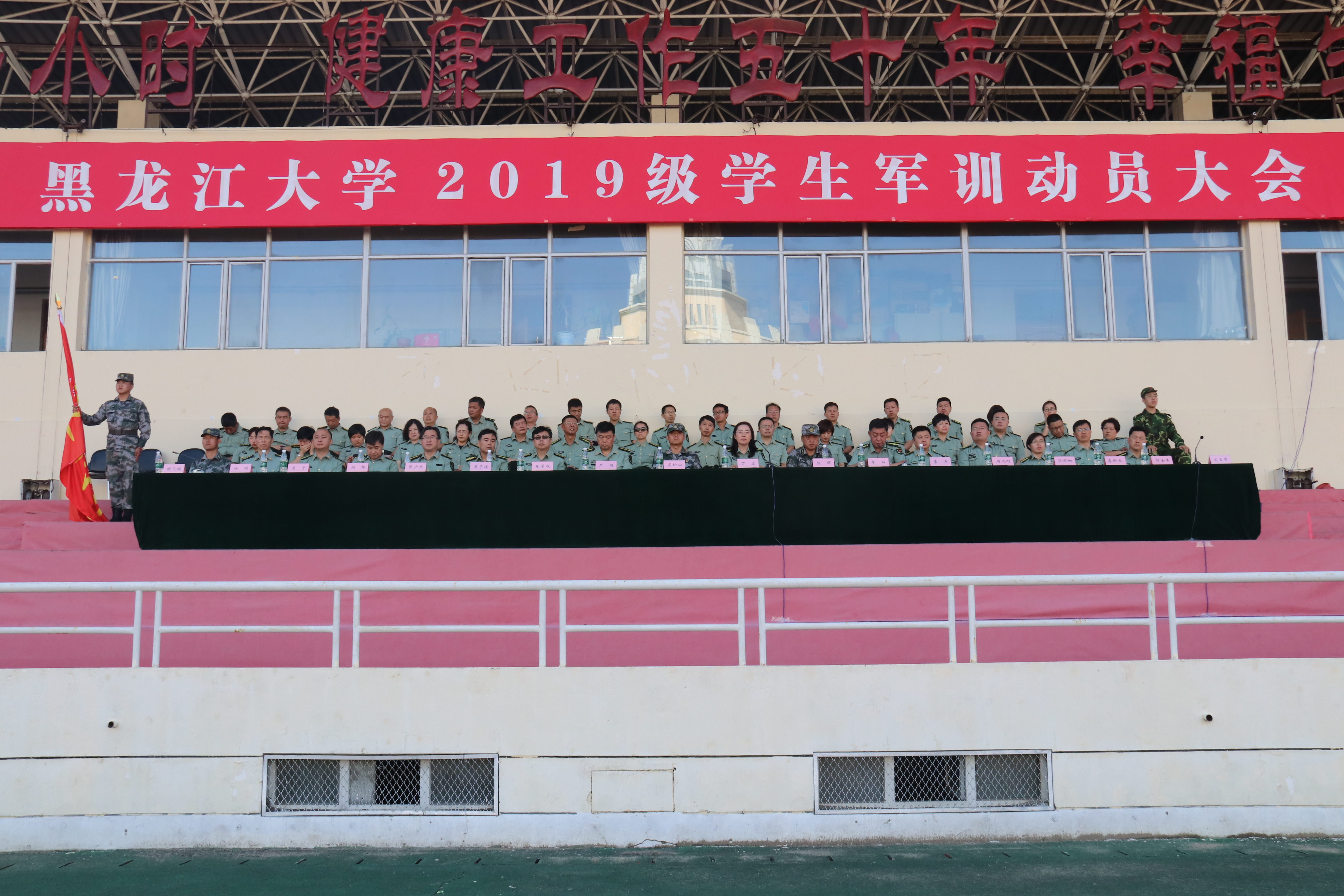 9月2日下午,我校在体育场召开2019级军训动员大会。校党委副书记、军训师政委丁宏,副校长、军训师师长严明,中国人民解放军某部队副参谋长高松山,高级工程师张晖,副政治教导员、军训师副参谋长胡飞鹏,以及学校各职能部处、各学院主管学生军训工作有关领导,2019级全体同学、辅导员老师和承训教官参加大会。大会由学工部部长、学生处处长、武装部部长,军训师参谋长李石主持。