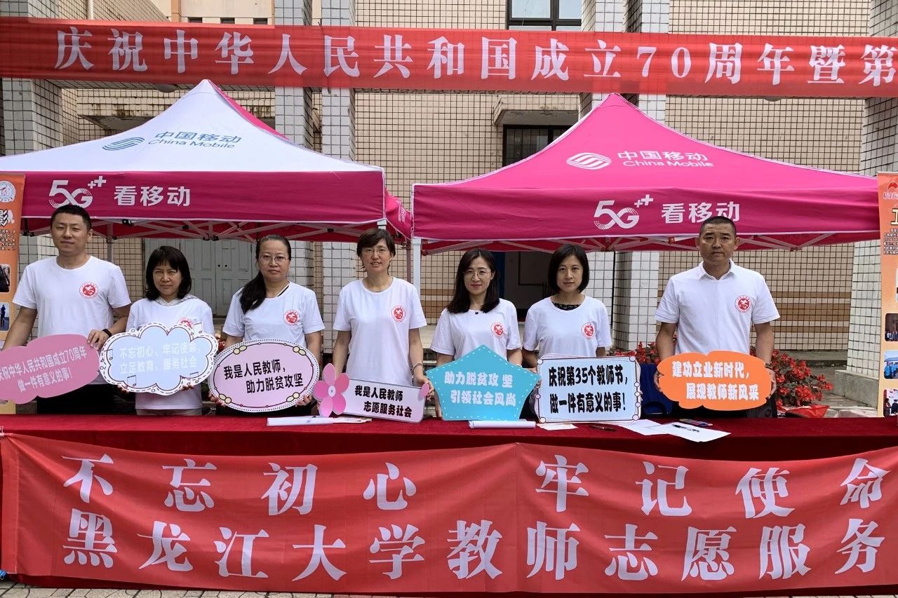 为庆祝中华人民共和国成立70周年,喜迎第35个教师节,激励广大教师不忘初心、牢记使命,立足教育、服务社会,9月4日-6日,HG8088皇冠在阳光讲坛门前开展了为期三天的“教师志愿服务、助力脱贫攻坚”活动。