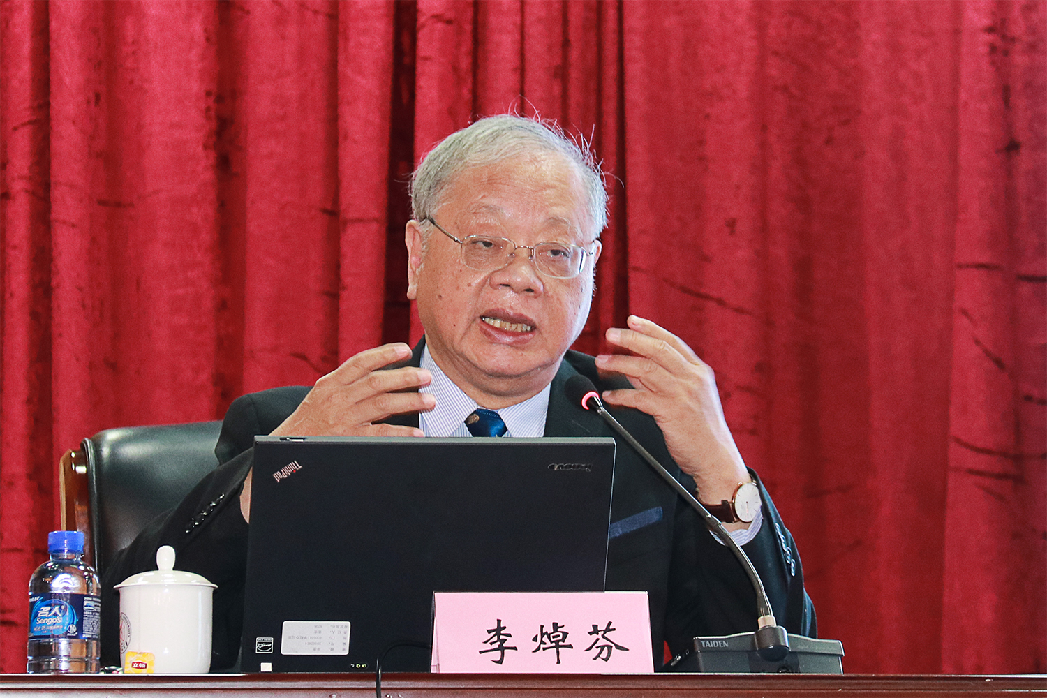 李焯芬院士回顾了国学大师饶宗颐先生的人生经历和治学之路。他介绍了饶宗颐先生所秉持的“求真求是、勇于创新”的治学态度和研究方法,高度评价了饶宗颐先生一生勤奋、不改初心的品格和毕生追求学问、不为金钱和权力动心的风骨。他借用饶宗颐先生深爱的荷花象征饶宗颐先生的不畏艰险、勇于担当的精神,劝喻后辈学人要勤奋、用功、专注、心无旁骛,对于自己所要承担的历史使命和社会责任要有所担当、勇于担当。