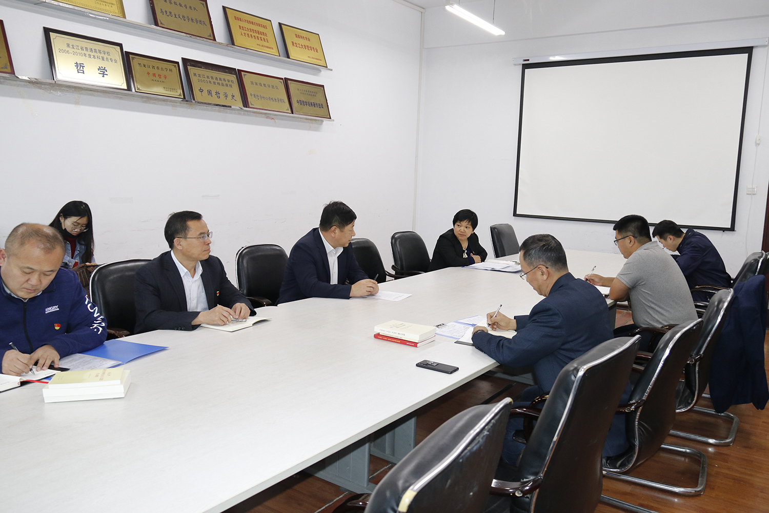 党委书记王永清赴联系点哲学学院,听取了学院关于主题教育工作部署及落实情况,查阅了学院处级党员干部个人自学计划、学院集中学习研讨方案、个人调研计划安排以及学院调查研究工作方案。他肯定了哲学学院以往的工作成绩,并针对此次主题教育提出了明确的要求,要求全体处级党员干部充分利用时间,抓好落实,既不能搞形式主义,也不能放松日常业务工作,建议同志们在读原著、学原文、悟原理的基础上,采取多种学习形式,利用好网络媒体资源,并推荐将《这就是中国》《我们走在大路上》和《中国正在说》等专题片作为补充学习内容。同时,他还鼓励学院继续发挥传统优势,成立主题教育宣讲团,进一步扩大提升学习效果。