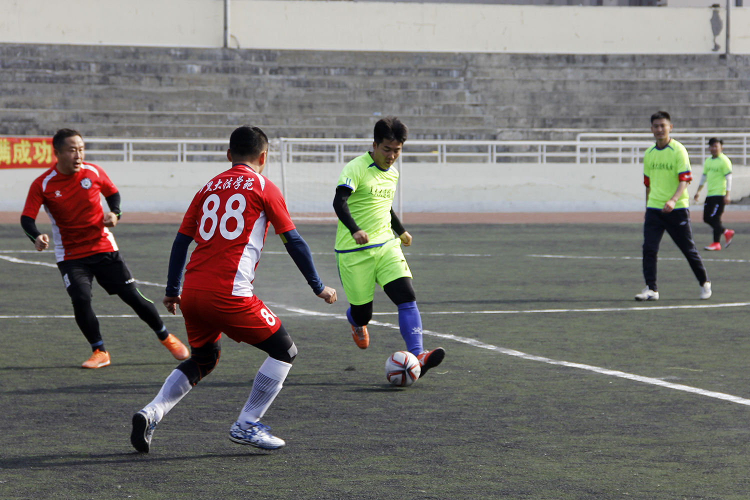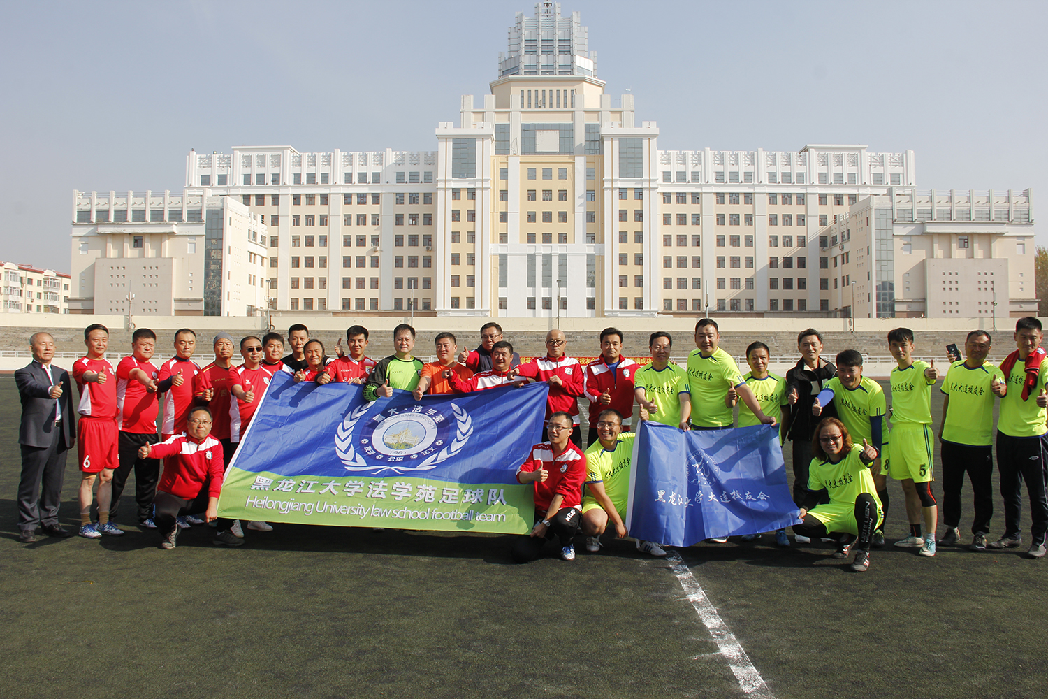 黑大法学苑vs黑大大连校友会足球队的足球友谊赛正式开赛。在九十分钟的比赛中,双方打成三比三平手。最终,双方通过点球大战,黑大大连校友会足球队以一球优势战胜黑大法学苑,获得2019年度交流比赛冠军。(摄影:张芳洁 张茹悦 宋佳卉 卢珊珊 陈天宇)