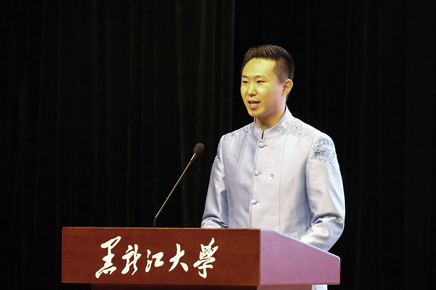 报告会在全场齐唱国歌声中开始。宣讲团成员以《跨越一千公里的距离只为一千米的欢愉》描绘了作为一名龙江人,在长安街上目睹家乡的彩车、在群众游行中高喊“祖国万岁”那些永生难忘的瞬间;以《精彩绽放耀党旗》诉说一名入党积极分子在参加广场联欢舞蹈团队时,耳濡目染9万余名首都师生克服困难、坚持不懈、顽强拼搏的精神,对党的认识进一步升华,最终成为一名光荣的中国共产党党员的心路历程;以《从忠诚走向忠诚》告白一名退伍士兵“退伍不褪色”,既能手握钢枪、保家卫国,也能扎实做好本职,以圆满的服务保障工作接受祖国检阅;以《天安门广场的小白杨 故宫里的守夜人》讲述了庆祝活动背后默默付出的志愿者们,不畏骄阳不畏雨,以地为席以天为盖,昼夜工作,用微笑服务作庆典最坚固的屏障……生动的宣讲报告令现场师生频频泪目。