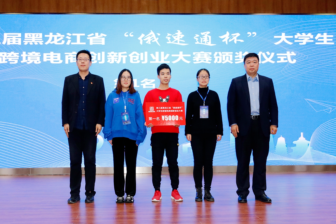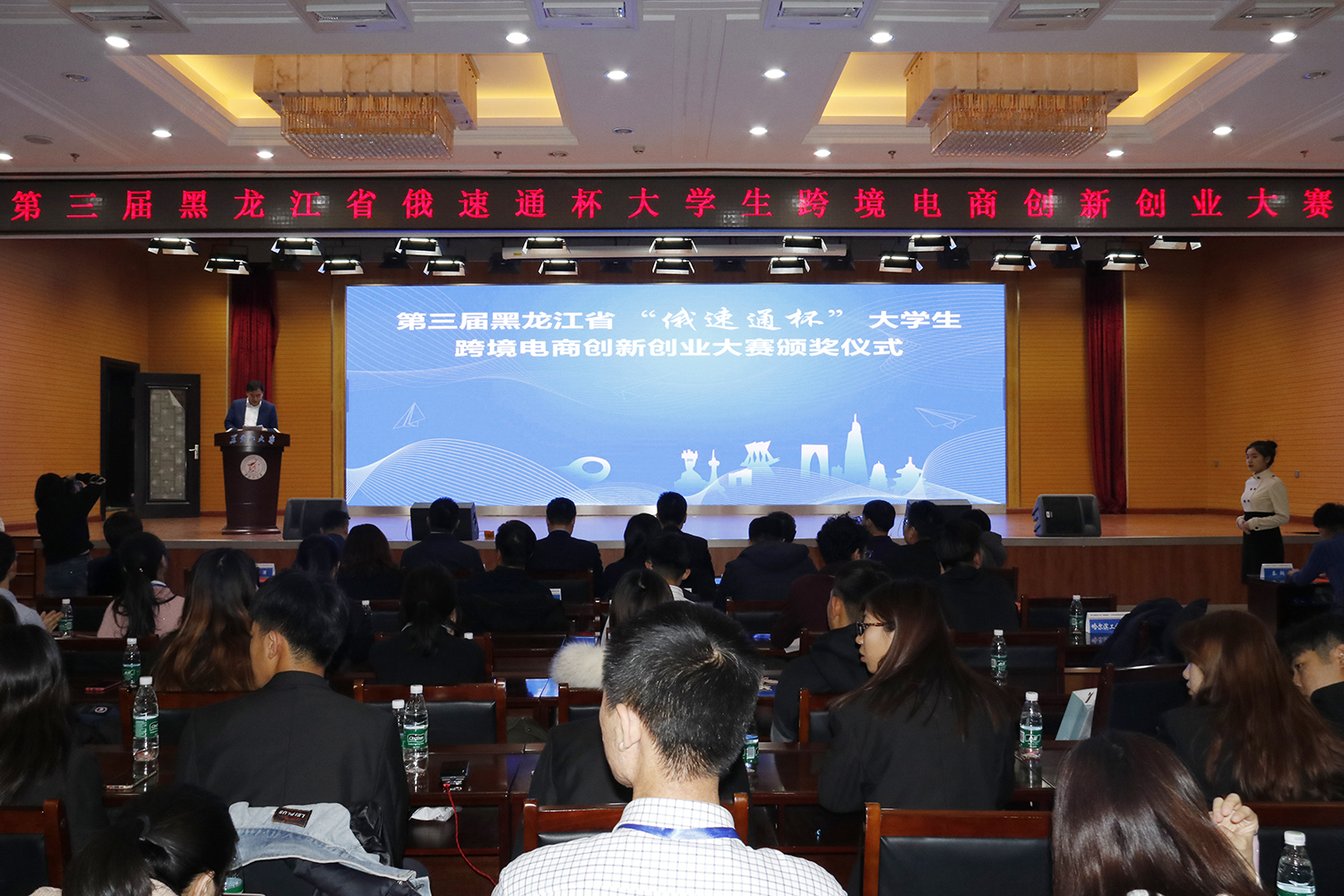 12月1日,黑龙江省第三届“俄速通杯”大学生跨境电商创新创业大赛颁奖仪式在我校主楼一楼报告厅举行。我校副校长严明、黑龙江省商务厅电子商务处处长尤晓林、黑龙江省教育厅高等教育处副处长王跃然、哈尔滨市商务局电子商务处处长李颜红、俄速通科技企业孵化器有限责任公司总经理刘晓明、俄速通集团副总裁、深圳集智联合创始人刘威、俄速通集智副总裁刘志国出席本次颁奖仪式。