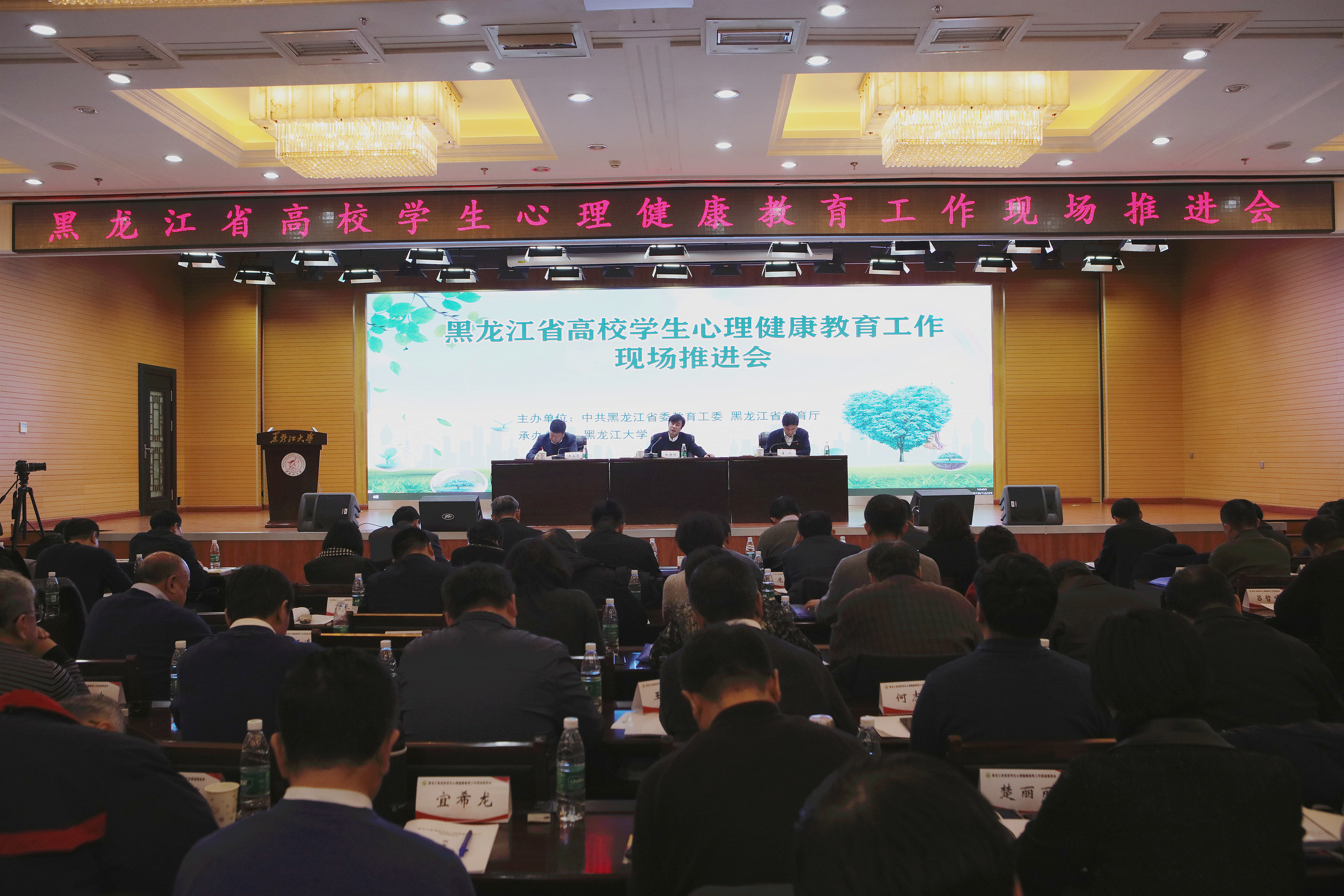 12月24日,全省高校学生心理健康教育工作现场推进会在我校召开。省委教育工委常务副书记,省教育厅党组书记、厅长赵国刚出席会议并讲话。各高校党委主要负责人、在哈部分高校分管校领导、学生工作部(处)长和专指委专家、教育厅相关部门负责同志200余人参加会议。会议由省委教育工委委员、二级巡视员董成主持。