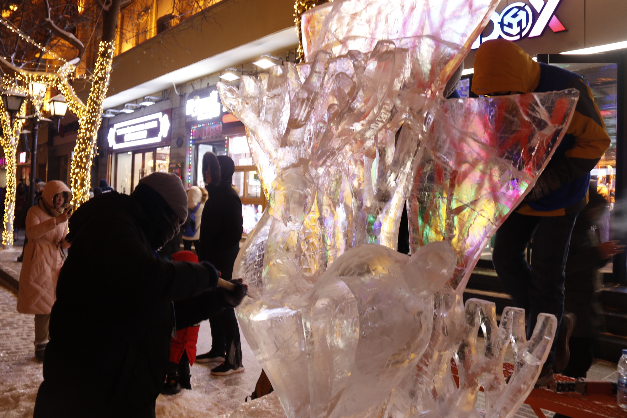 开幕仪式后,各高校参赛选手们开始了为期3天的现场冰雕创作与制作。本次比赛以“冰雪筑梦、爱我中华”为主题,立足于新中国成立70周年光辉成就、传承和弘扬中华优秀传统文化、聚焦“不忘初心,牢记使命”的时代主题。参赛者使用多种冰雕工具,将天然大冰块打造成拥有3D效果的冰雕塑,充分发挥了参赛者的艺术造型技能和空间想象力,使中外游客们在融入到百年老街“赏冰乐雪”的新年气象中。