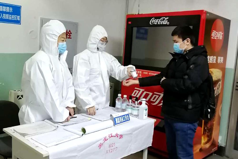 据悉,校医院也针对疫情防控进行了演练,模拟在接诊过程中检查出了发热患者(体温高于37.3℃),分诊组立刻指引该患者到隔离观察区入口进入隔离观察区,医务人员穿好防护装备进入隔离区接诊、查体。经问诊查体发现该患者为可疑发热患者,立刻报告哈西社区卫生服务中心及上级防疫部门,由专用车辆送至指定医院治疗。校医院还模拟了后续的消毒及隔离等相关工作。学校食堂,学府宾馆隔离区也都进行了模拟演练。(摄影:赵春争)