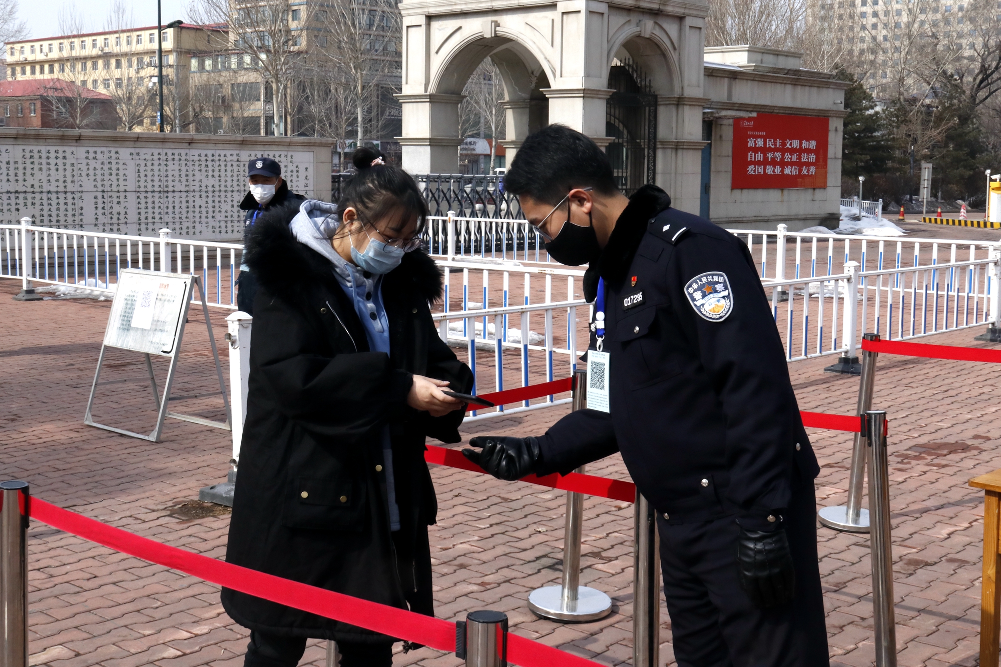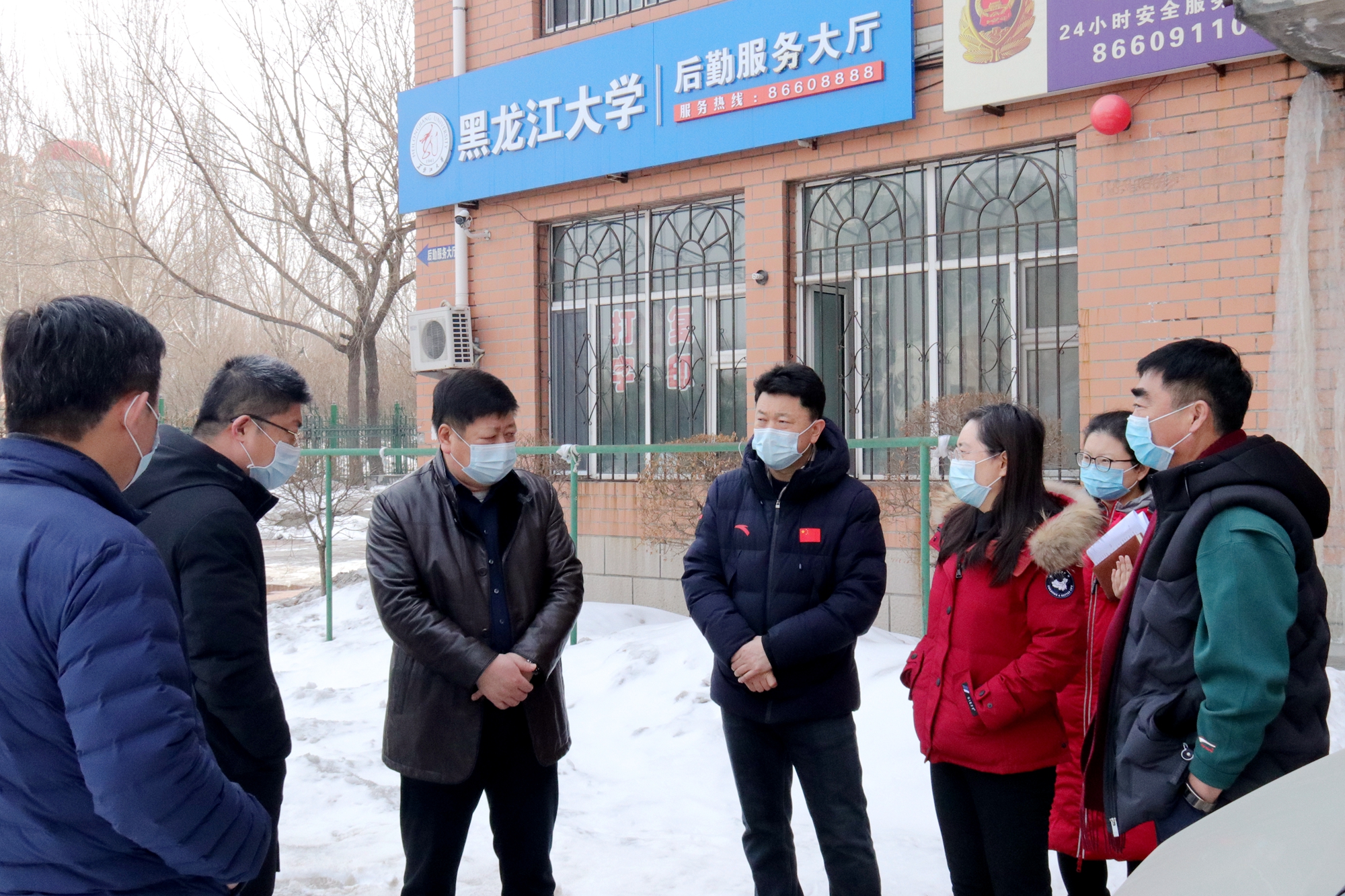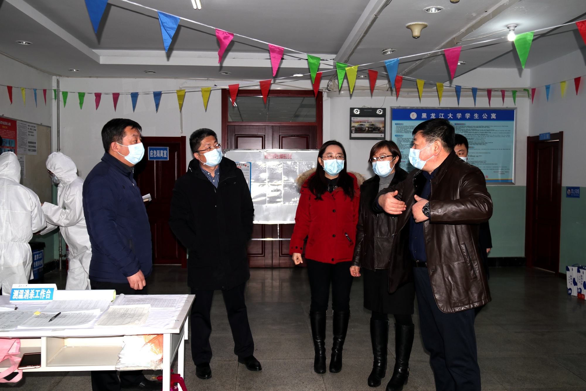 会后,王永清书记、丁宏副书记、陈文远副校长一行来到主楼正门前参加学生开学入校防控疫情演练,检查测量体温,入校扫码等流程,详细了解学生入校防控措施,并对演练的具体环节、细节提出了改进要求。王永清书记强调,务必加强学生入校排查监测工作,严格落实防控措施,切实做到“早发现、早报告、早隔离、早治疗”。在子衿园综合南楼,王永清书记一行检查了学生宿舍防控情况,亲切慰问了住在这里的8名留校学生,为他们带来了饼干、牛奶等慰问品,并鼓励同学们安心学习,科学防护,坚定必胜信念,共同打赢这场疫情防控阻击战!