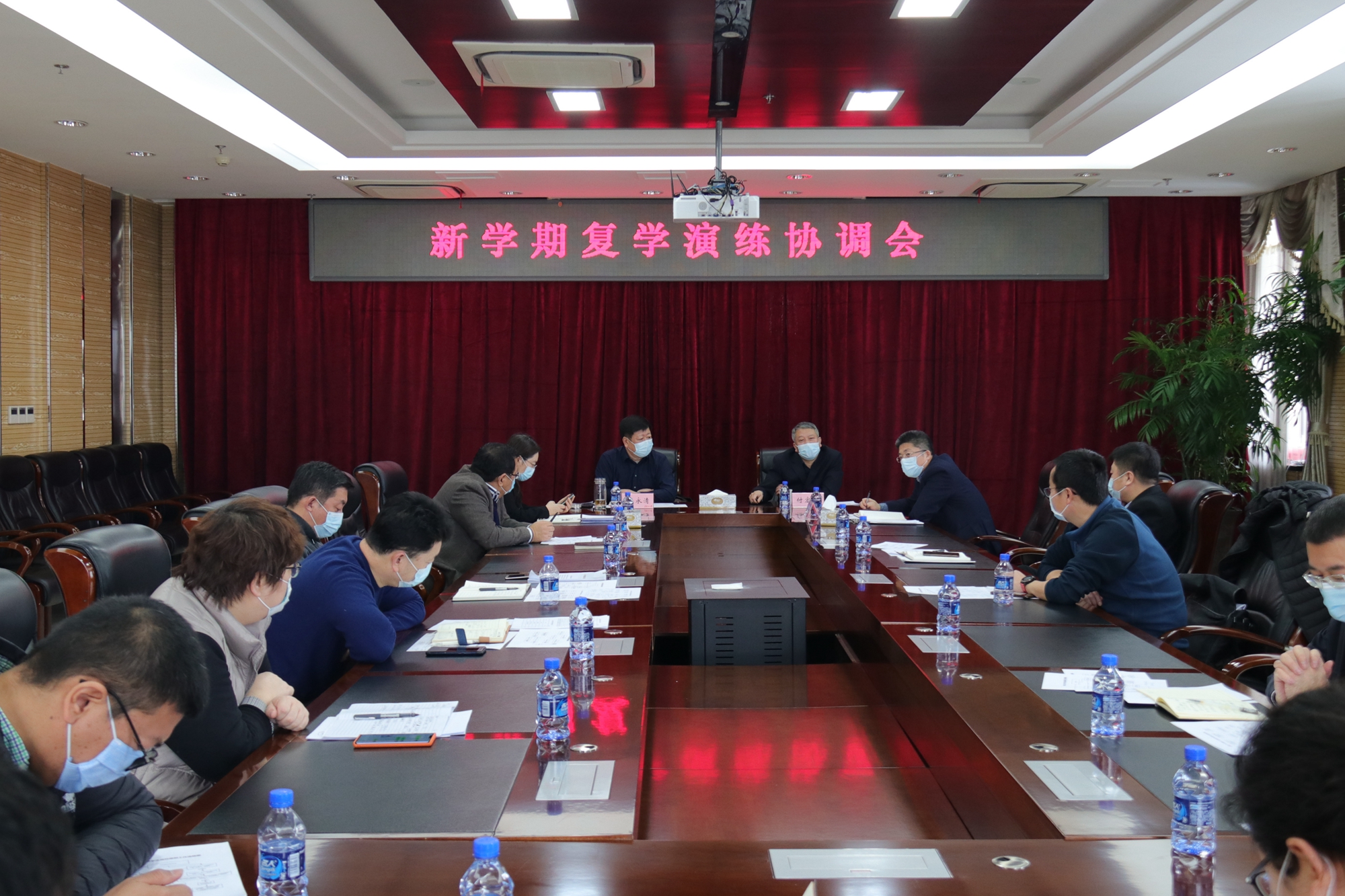 为进一步做好学校新冠肺炎疫情防控工作,有效应对新学期开学前后师生大量返校所产生的疫情风险,切实维护好师生身心健康,3月17日,我校在主楼8楼会议室召开新学期复学演练协调会。校领导王永清、付宏刚、丁宏、陈文远、董玉庭,相关职能部处主要负责人参加会议。会议由校党委书记王永清主持。