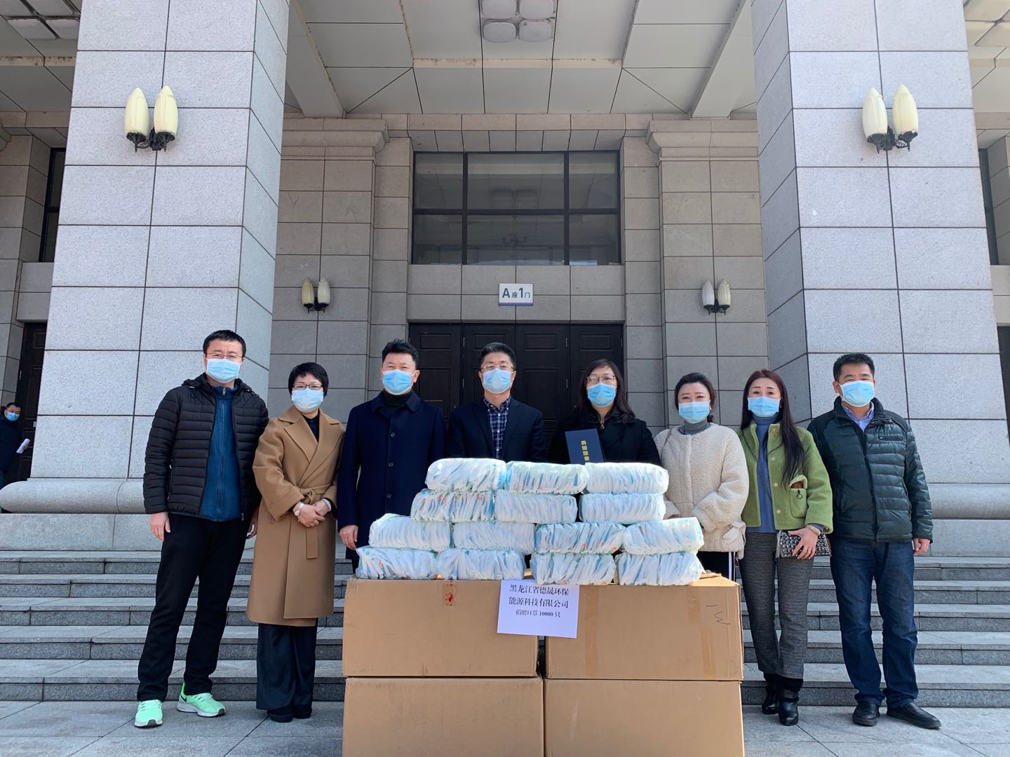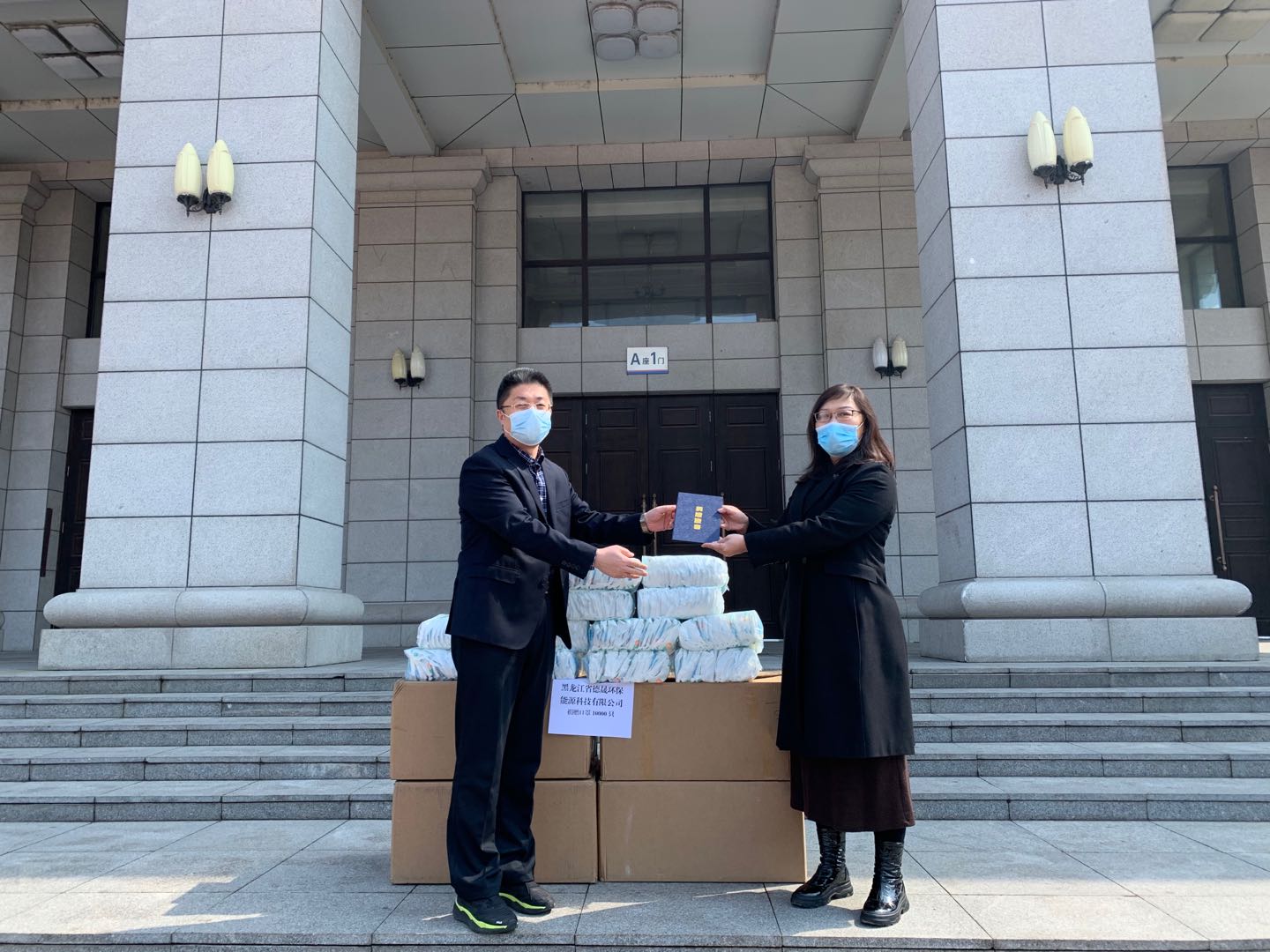 4月9日上午,黑龙江省德晟环保能源科技有限公司向我校捐赠10000只一次性医用口罩用于新冠肺炎疫情防控。副校长陈文远代表学校接受捐赠物资,并向黑龙江省德晟环保能源科技有限公司企业法人侯长华女士颁发捐赠证书。学校办公室、教育发展基金会办公室、校区管理处、后勤管理处等单位负责同志参加捐赠仪式。