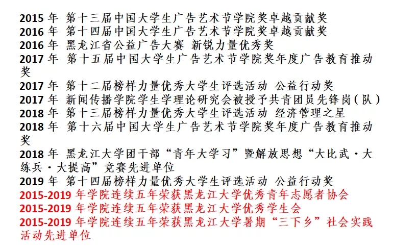 全省“两红两优”表彰是团省委授予全省广大团员青年、团干部和各级团组织的荣誉和褒奖。此次,我校2个集体、4位个人荣获表彰,是团省委对我校团组织、团员青年和团干部的高度鼓励与充分肯定,必将极大地激励我校各级团组织、团员青年和团干部勇挑重担、拼搏进取,为推动龙江全面振兴全方位振兴、实现“两个一百年”奋斗目标、实现中华民族伟大复兴中国梦作出新的贡献!(校团委供稿)