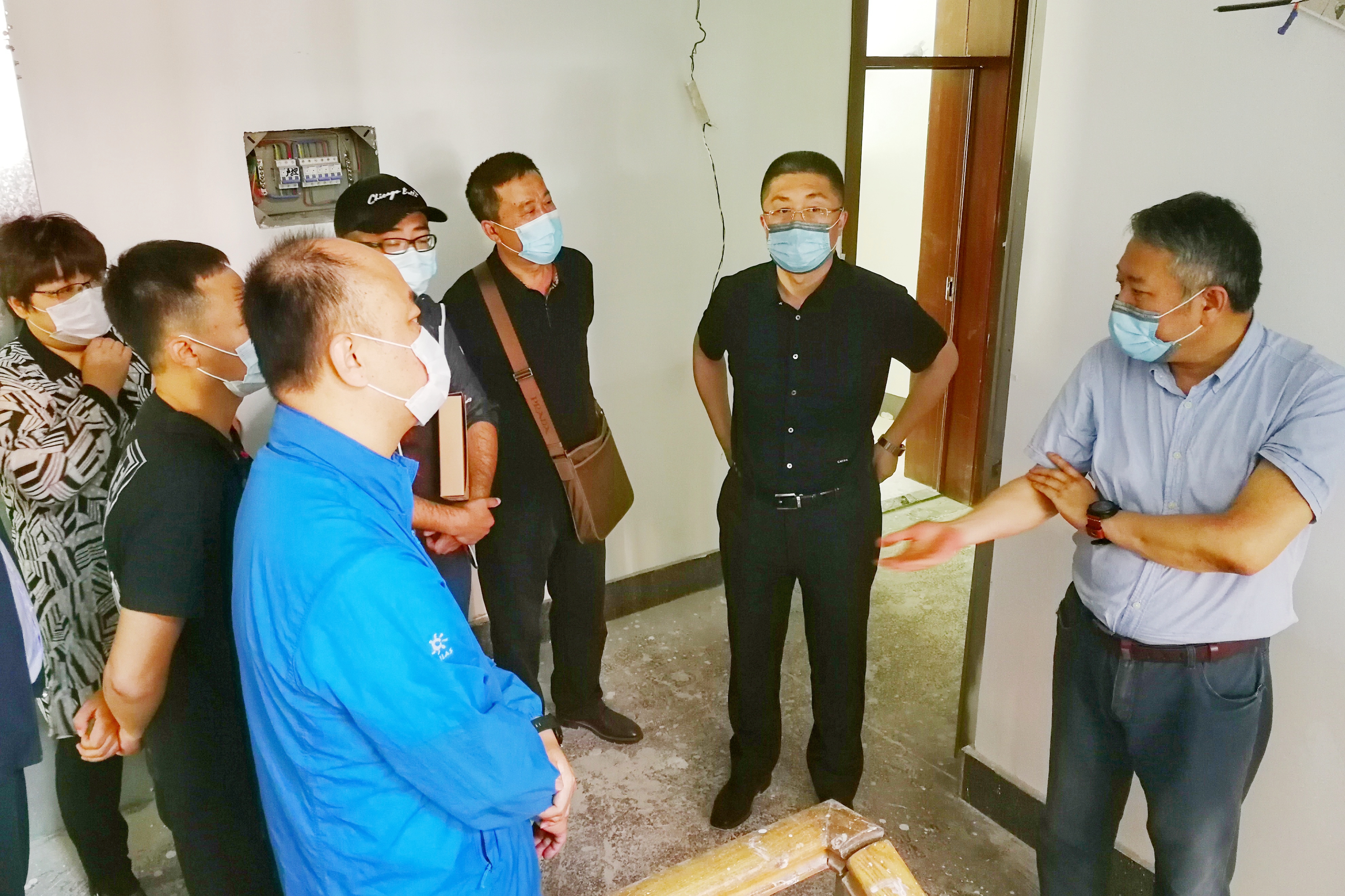 在A5公寓维修改造施工现场,付宏刚校长、陈文远副校长检查了维修改造工程中的门窗维修、厨房卫生间改造、供水供电管线更换等情况,要求施工单位严格按照工期的进度安排,在确保工程质量的前提下,想方设法加快推进施工进度,保质保量地完成好维修改造任务;要切实将安全生产要求贯彻到位,明确安全责任的落实,做好安全隐患排查,施工中务必要符合疫情防范的相关要求。