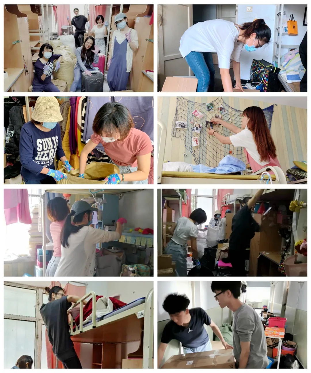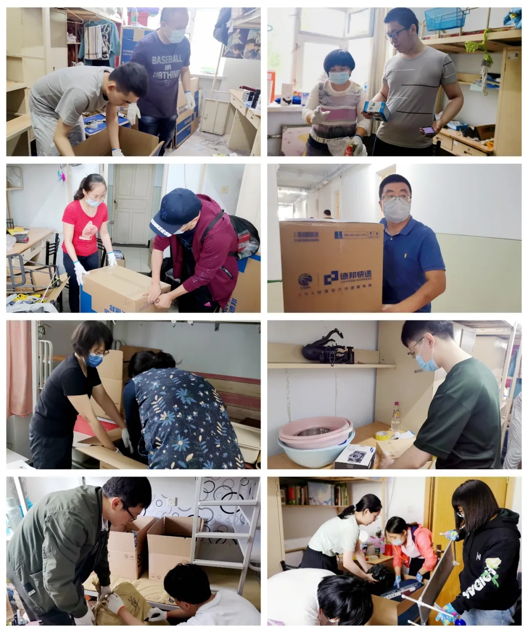 在全校领导、党员干部、专任老师、返校学生和全体学生公寓员工的共同努力下,学校实现了全员“一对一”爱心邮寄,同时延续了学校多年来“感恩母校,还寝室一片’净’”的毕业生文明离校优良传统,圆满完成了2020届全体毕业生的行李整理邮寄工作。(图片:机关党委、各学院)