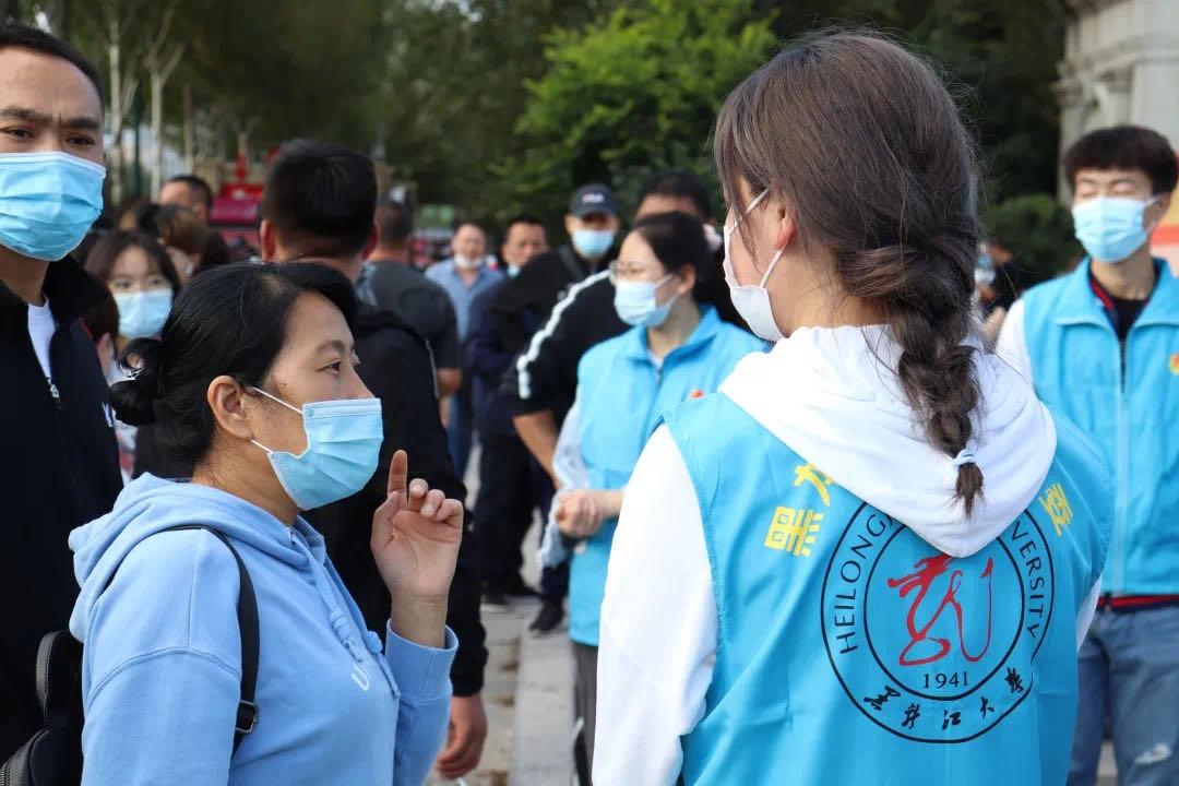 到了学校门口,行李消杀、测量体温、龙江健康码核验、身份核验、核酸检测、在主楼广场办理入学手续,在展板前签上名字、写下祝福语,作为入学第一天的纪念,一系列流程顺利而又高效。