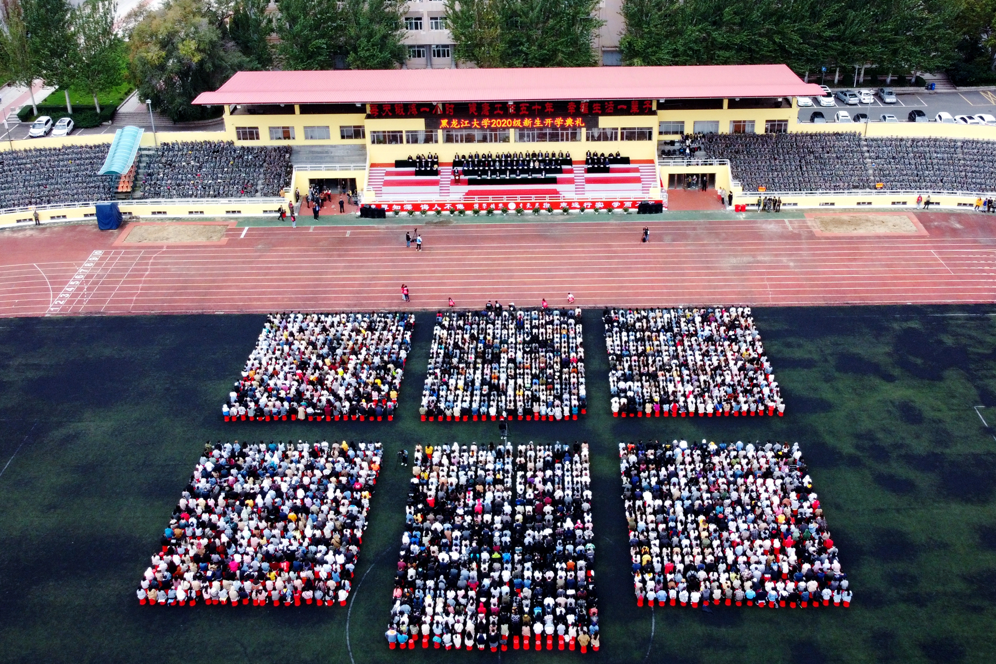 9月20日上午9时,我校在2号田径运动场隆重举行2020级新生开学典礼。校领导王永清、付宏刚、蒋晶洁、丁宏、严明、张颖春、于文秀,各教学单位、职能部门主要负责人,校友代表及全体2020级新生参加了开学典礼。开学典礼由校党委副书记丁宏主持。