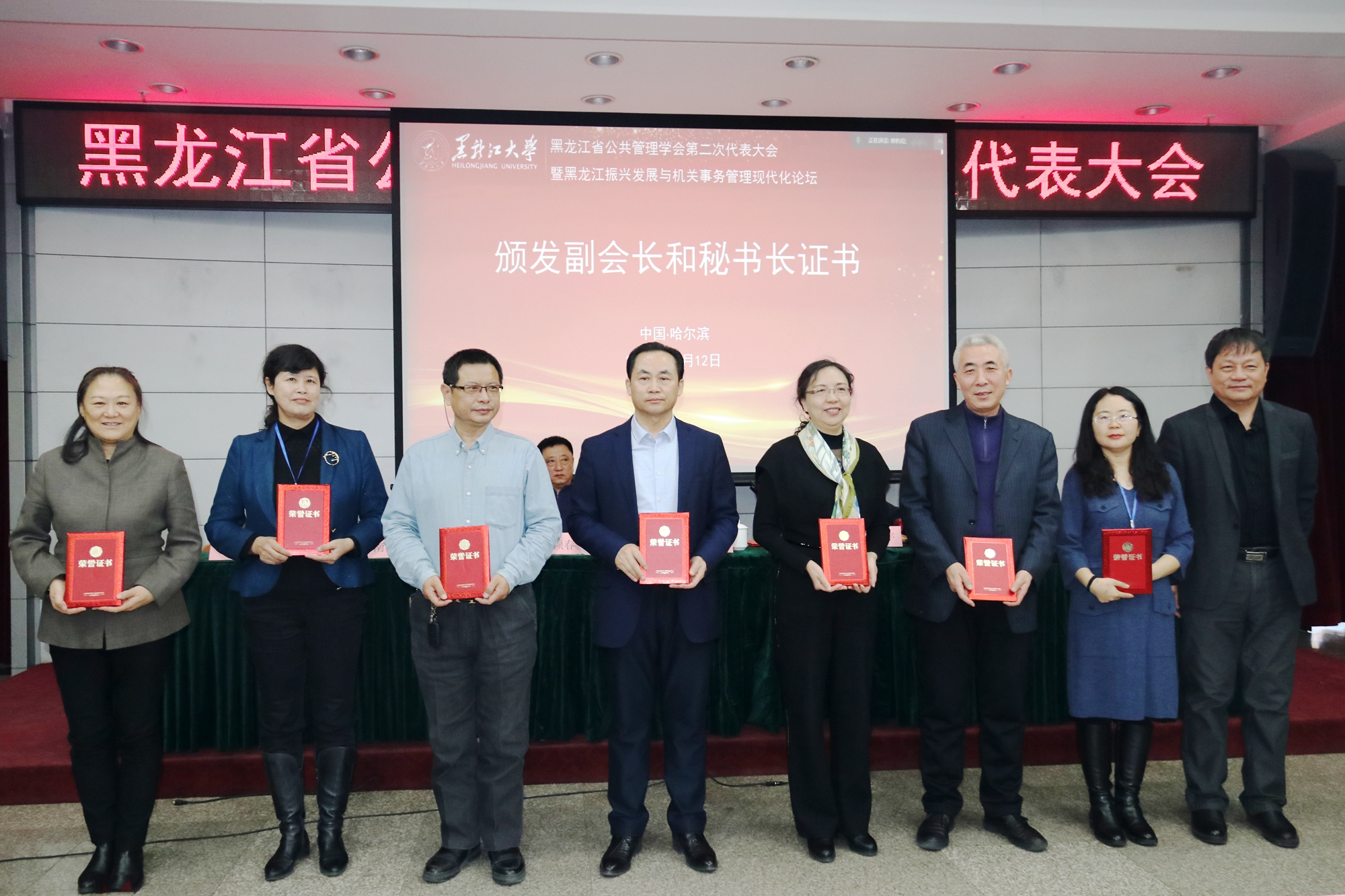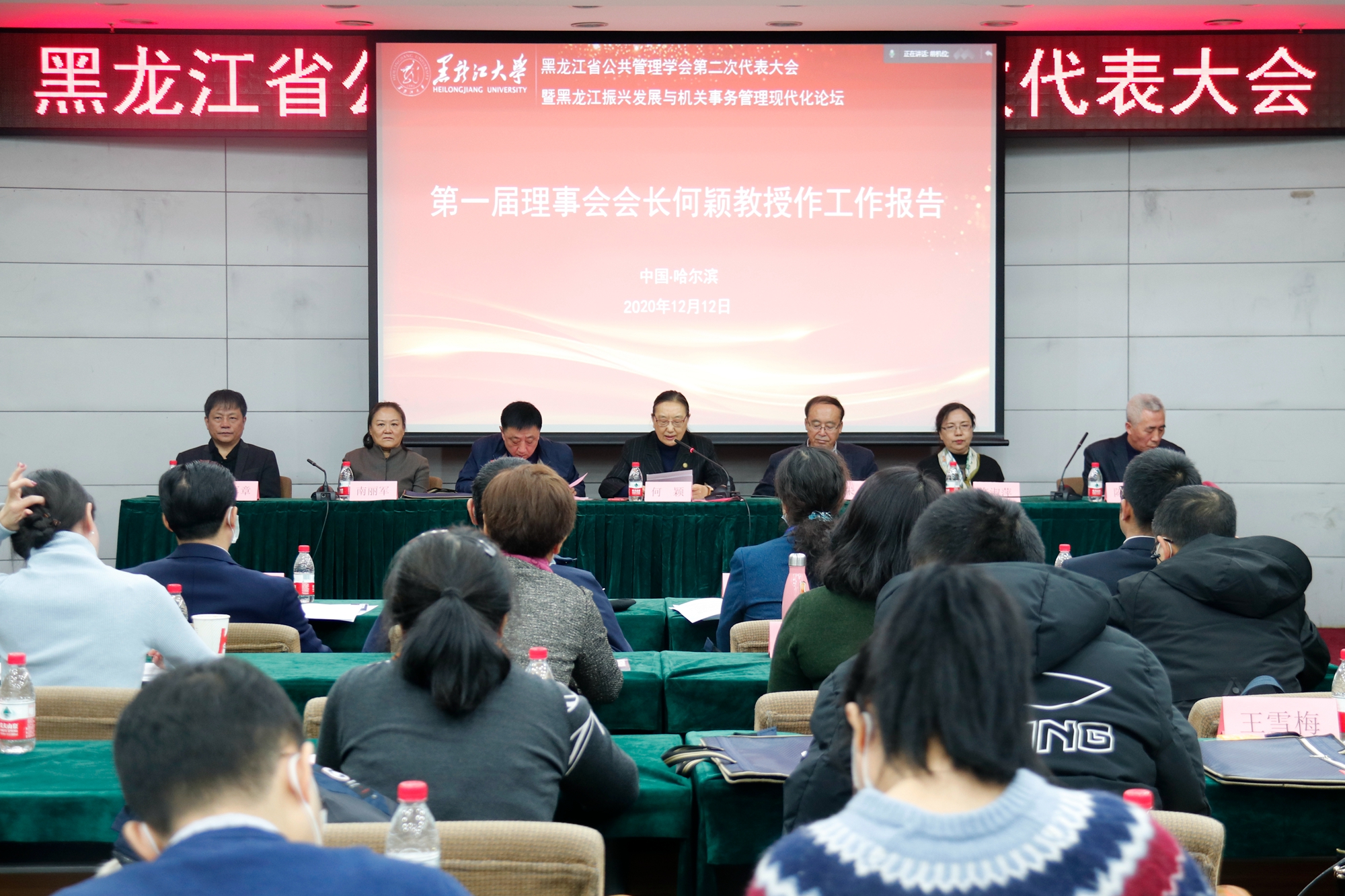 12月12日,黑龙江省公共管理学会第二次代表大会暨黑龙江振兴发展与机关事务管理现代化论坛在我校召开。本次大会由黑龙江省公共管理学会主办,HG8088皇冠政府管理学院、黑龙江省社会管理研究基地、HG8088皇冠机关事务管理研究中心、HG8088皇冠行政管理研究中心承办。省公共管理学会会长何颖,省政治学会会长朱宇,我校副校长张颖春,来自省机关事务管理局、中共哈尔滨市委党校等50余家单位代表参加会议。会议由省公共管理学会秘书长教军章主持。