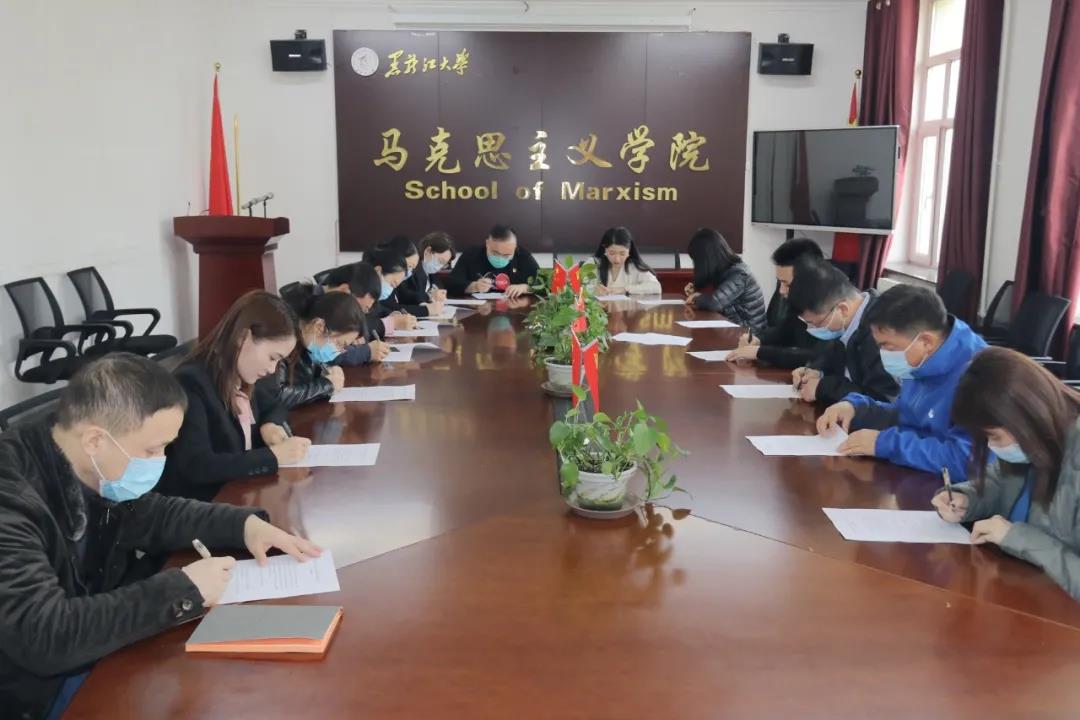 王永清书记代表学校党史学习教育工作领导小组作工作汇报。他指出,党委高度重视,把开展党史学习教育作为一项重大政治任务进行布置,严格按照省委和省委教育工委有关要求,扎实推进党史学习教育工作,取得初步成效。一是提高站位,在强化安排部署上下功夫。学校组织领导到位,专题研讨,精心设计,周密部署;顶层设计到位,按照“1+7+5”学习教育模式,精心制定学习教育方案;学习条件保障到位,为处级以上干部、专家讲师团成员、广大党员提供充足的学习保障。二是创新形式,在确保学习效果上下功夫。学校结合党史学习教育要求和学校工作实际,创新学习形式、学习方法、学习内容,努力做到“八个明确”“三个纳入”“五个相结合”,截止目前,校理论学习中心组开展集体学习两次,二级党组织基层支部以及个人通过中心组学习、专题培训、实践活动等多种形式有序开展学习。中央电视台、中国日报、中青网、新华网等主流媒体报道我校党史学习教育典型经验48篇,在全校营造了党史学习教育的浓厚氛围。三是立足实际,在推动实际工作上下功夫。学校把党史学习同总结经验、观照现实、推动工作结合起来,同解决实际问题结合起来,通过开展“我为黑大献一策”、常态化开展领导干部“走流程”、“我为师生办实事”、“我为社会办实事”四大专项行动,力争让师生群众满意,为服务龙江发展做出应有贡献。