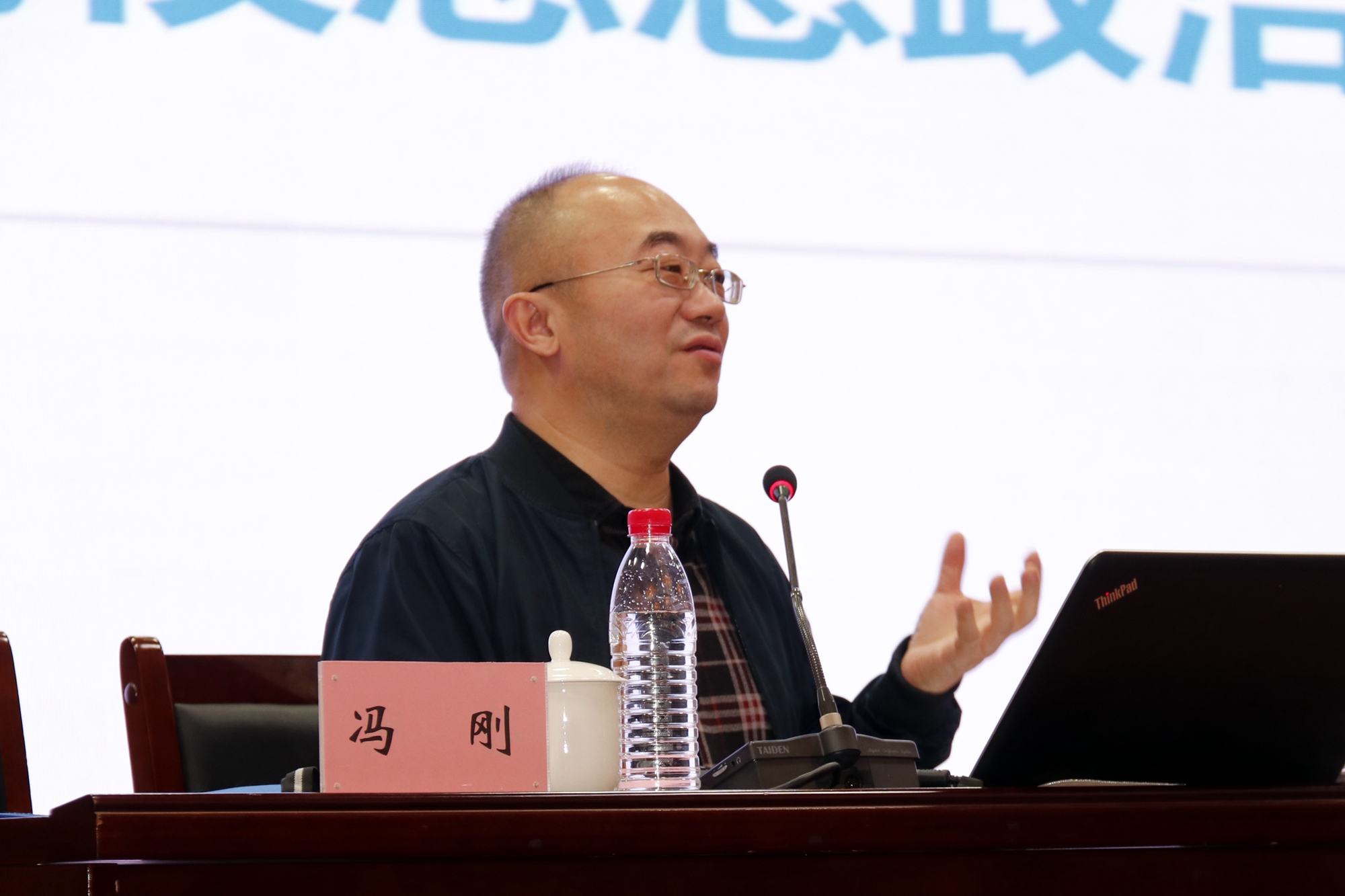 冯刚教授以《新时代高校思想政治教育创新发展》为题,从“习近平关于高校思想政治教育系列论述”“改革开放以来高校思想政治教育政策回顾”“新时代高校思想政治教育创新发展路径”“新时代高校思想政治教育质量评价”四个方面解读了高校思想政治教育工作任务。冯刚教授站在学理和情理的角度,综合运用马克思主义理论逻辑和思维方法,梳理了习近平总书记关于高校思想政治教育的系列重要论述,回顾了改革开放以来高校思想政治教育的发展历史,介绍了新时代高校思想政治教育创新发展的路径及评价体系。冯刚教授还与大家分享了其在北京大学读书学习的经历,并结合当前学生特点和思想政治教育规律,为我校学生工作队伍提出了要增强“四个能力”的指导意见。