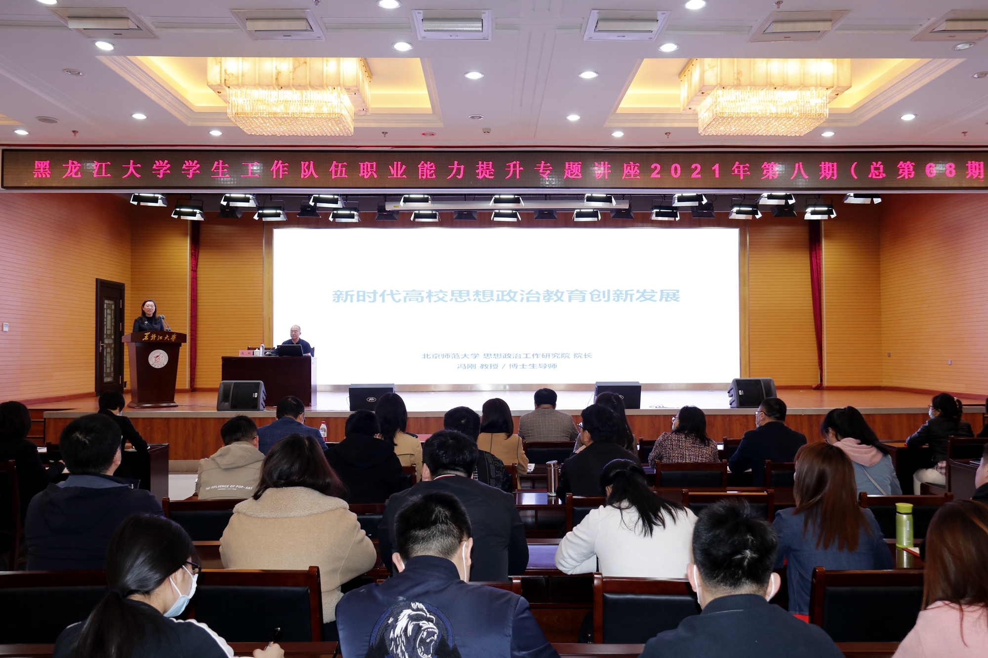 为贯彻落实《关于加强和改进新形势下高校思想政治工作的意见》《教育部等八部门关于加快构建高校思想政治工作体系的意见》等文件精神,进一步提高我校学生工作队伍职业能力和工作水平,4月29日上午,学校邀请教育部思想政治工作司原司长、现任中国教育发展战略学会思想道德建设专业委员会理事长、全国高校思想政治教育研究会学术委员会主任、北京师范大学思想政治工作研究院院长,教授、博士生导师冯刚教授作专题讲座。学校党委书记王永清、党委副书记丁宏出席讲座,党委宣传部、学生工作部、校团委、招生就业指导中心全体工作人员、各学院主管学生工作领导、思政课教师、全体辅导员、公寓辅导员参加讲座。讲座由校党委副书记丁宏主持。
