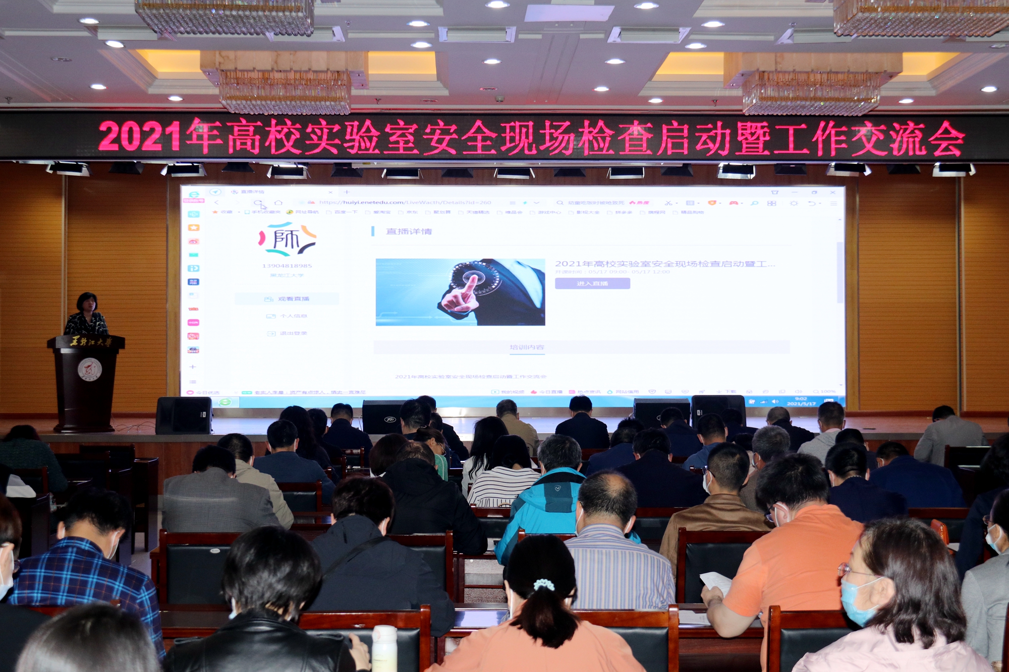 5月17日,教育部科技司、高教司2021年高校实验室安全现场检查启动暨工作交流会在京召开,我校在主楼一楼报告厅设立视频会议分会场。副校长井立强、副校长李卓、各教学科研单位主管实验室工作负责人、教学科研实验室主任、实验教师、实验工程技术人员、实验室建设与设备管理处、安全保障部相关工作人员参加会议。会议由教育部高教司一级巡视员宋毅主持。