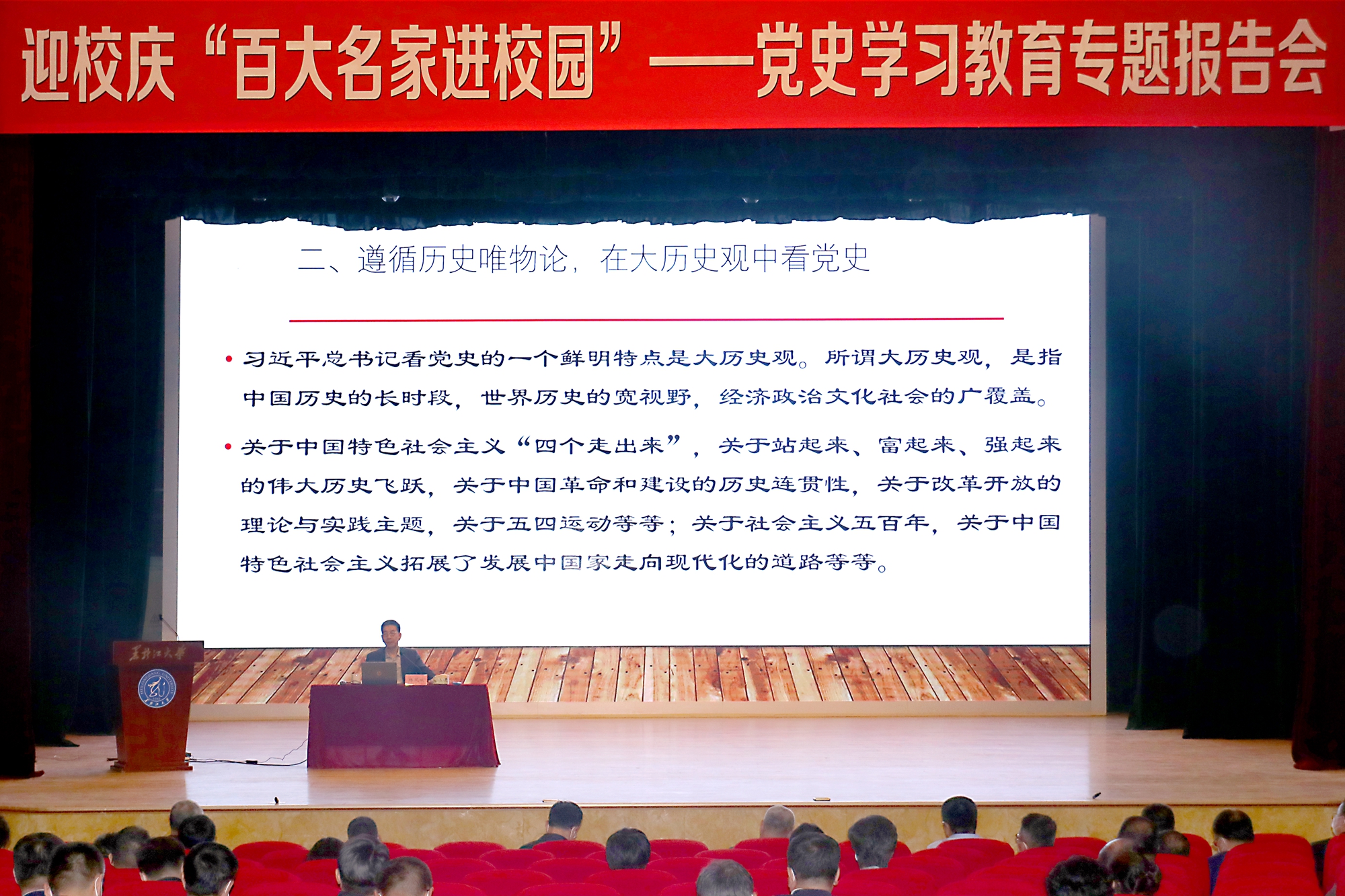 6月3日下午,我校在音乐厅举办迎校庆“百大名家进校园”党史学习教育专题报告会(第三场)暨新时代高教改革发展政策理论与实践培训班第二十六讲。教育部“长江学者”特聘教授,中国人民大学中共党史党建研究院执行院长、我校客座教授杨凤城担任主讲人。省高校党史学习教育第二巡回指导组领导,全体校领导、全校中层干部、校党史学习教育领导小组工作机构全体成员、校党史学习教育讲师团成员、校党史学习教育指导组成员、教工党支部书记、马克思主义学院教师、全体辅导员、学生党员代表参加报告会。校党委副书记丁宏主持报告会。