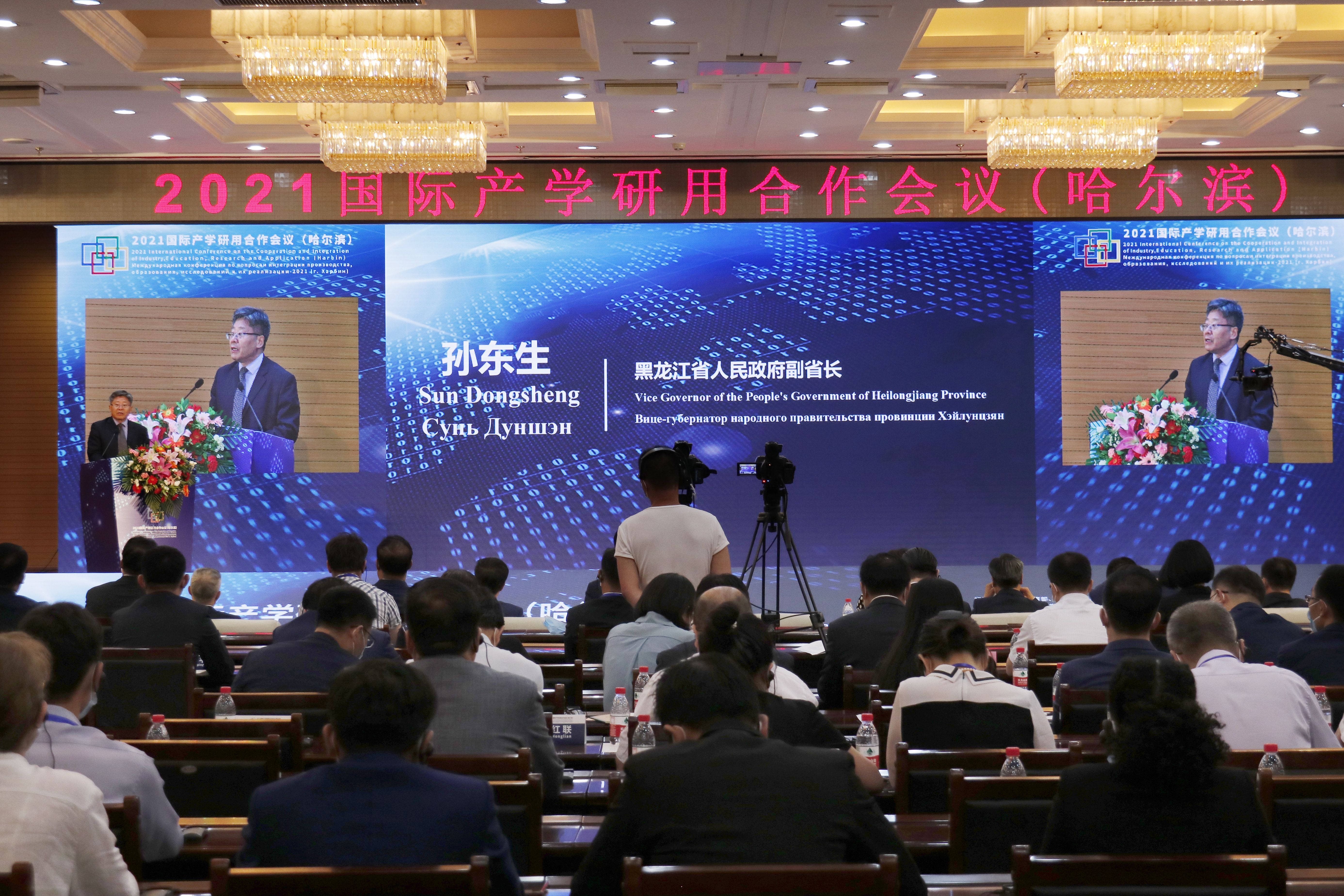 6月16日下午,2021国际产学研用合作会议(哈尔滨)在我校主楼一层报告厅隆重开幕。本次会议由教育部、黑龙江省人民政府指导,教育部学校规划建设发展中心主办,我校与黑龙江省教育厅、哈尔滨工业大学、东北农业大学联合承办。来自中国、俄罗斯、乌克兰、法国等14个国家高校、科研机构和企业的470余名专家学者通过线上与线下互动的方式,围绕人工智能大数据、新材料、极地科学与技术、现代农业与智慧等前沿科技领域进行了深入研讨与交流,并达成了多项合作协议。黑龙江省副省长孙东生、教育部国际司副司长李海出席开幕式并致辞。俄罗斯圣彼得堡国立大学校长科罗巴切夫在线致贺辞。校党委书记王永清、校长付宏刚、副校长井立强,以及东北林业大学、哈尔滨商业大学、齐齐哈尔大学、哈尔滨工程大学、东北农业大学、哈尔滨理工大学、黑龙江科技大学、东北石油大学、黑龙江八一农垦大学、佳木斯大学的校领导共同参加了开幕式。