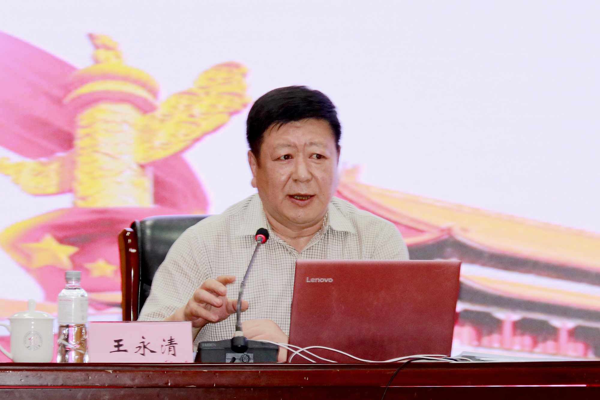 7月9日下午,我校在主楼一楼报告厅举办党史学习教育专题党课。校党委书记王永清担任主讲人。校领导蒋晶洁、丁宏、梁东辉、张颖春、于文秀、钟卫东、井立强、李卓,全校中层干部,校党史学习教育领导小组工作机构全体成员,校党史学习教育师生讲师团成员、校党史学习教育指导组成员参加讲座。校党委副书记丁宏主持讲座。