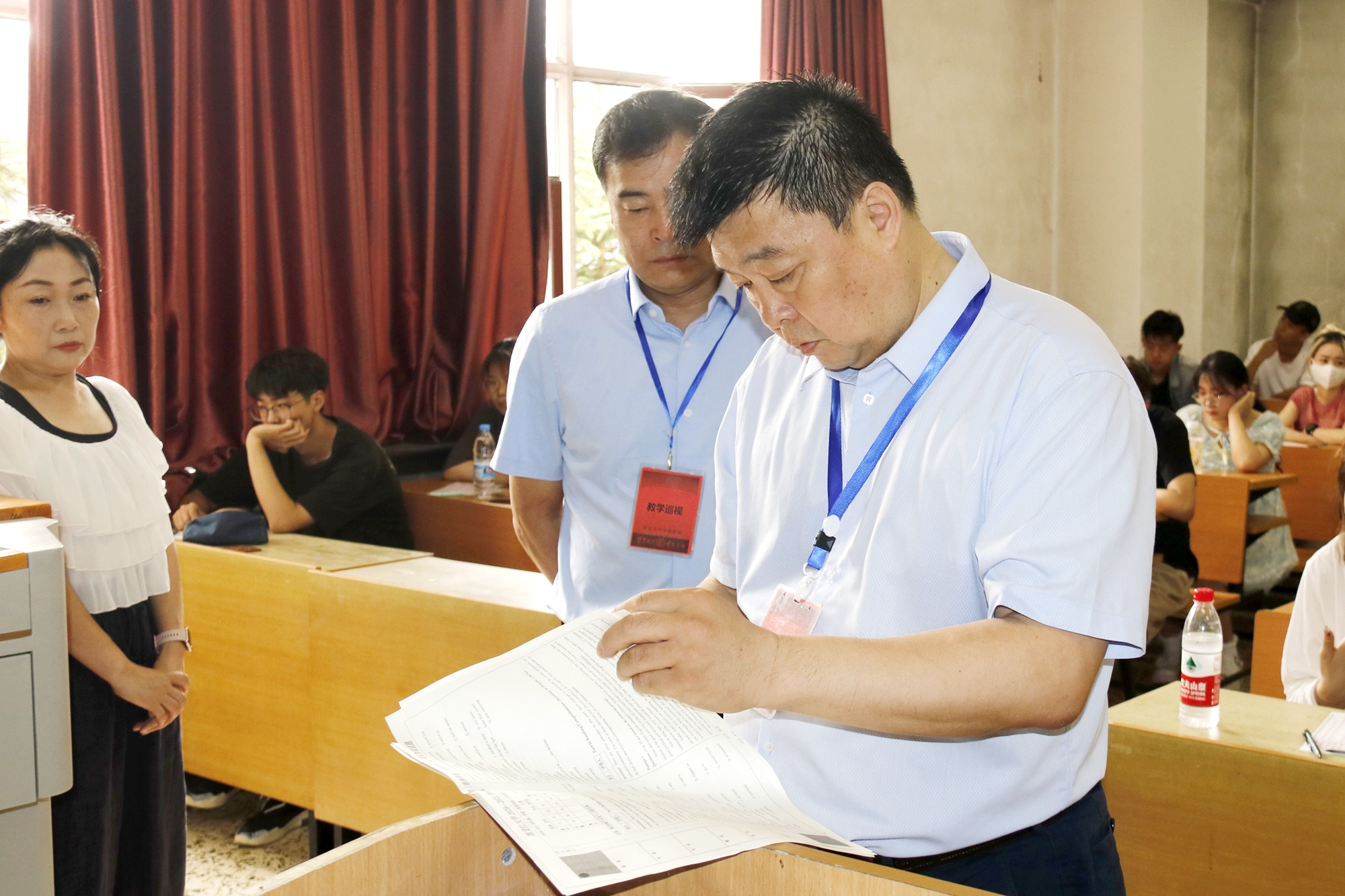 巡视期间,严明副校长强调,严肃考纪,端正考风,是形成我校优良学风的关键。监考教师要认真履行监考职责、强化落实各项考试工作部署、维护考试公平公正,让学生考出真水平,真实反映教学效果,对提升我校教学质量、形成优良的学风将起到积极作用。