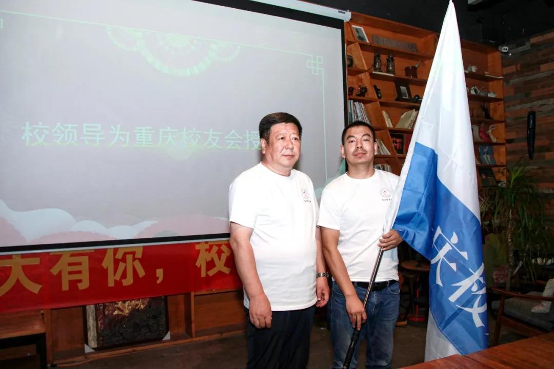 ▲王永清书记向西南联盟(云贵川渝)校友会校友代表授旗
