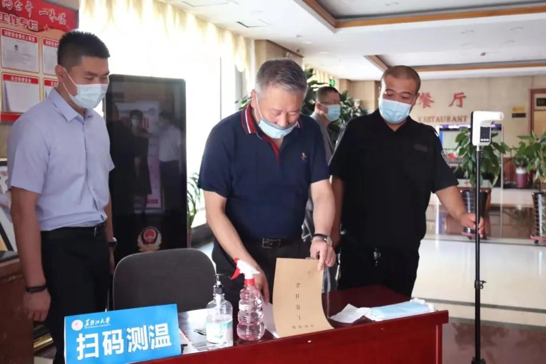 校领导一行先后到学校正门、宿舍楼、学府宾馆检查指导学生返校工作,并对学生报到、入住宿舍、应急情况处理等场景进行模拟演练,全力保障返校工作平稳、有序进行。