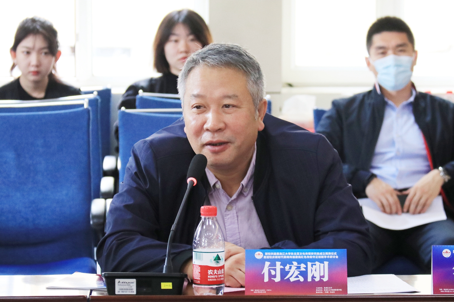 付宏刚校长对专家学者的到来表示感谢,希望东北亚文化传媒研究院能够成为多方共同发展的基地。同时,他表达了两个期待,一是期待与徐江善院长加深交流合作,共同推动传媒改革与发展。二是期学科专业交叉与融合,应抓住“一带一路”和对俄集成的发展契机,运用学术知识,打造专业特色,利用新兴技术,推动新文科建设。(摄影:何睦 陶佳琪)