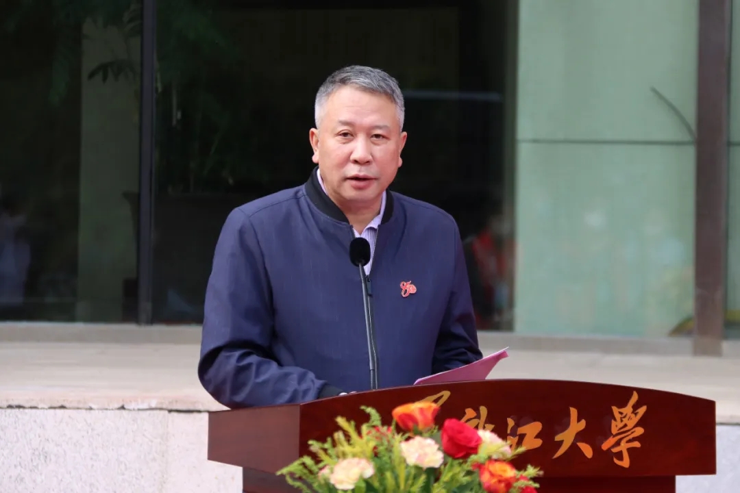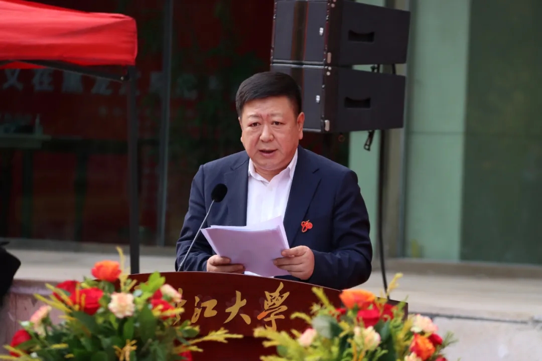 李欣昱董事长在仪式上致辞。她深情回顾母校70年校庆时,她所带领的团队首次助力校史馆建设,为后来的创业之路打下基础的往事;十年后,她重回母校,参加校史馆第二次大型改扩建,内心充满着无限的感慨与感恩,同时也深深为母校的蒸蒸日上而自豪。她感谢母校领导、老师和工作人员对此次施工布展的高度重视与大力支持,让此次工程得以如期顺利完成,并表示无论走到哪里,走得多远,都不会忘记自己是黑大的一员,衷心祝贺母校80周年生日快乐。