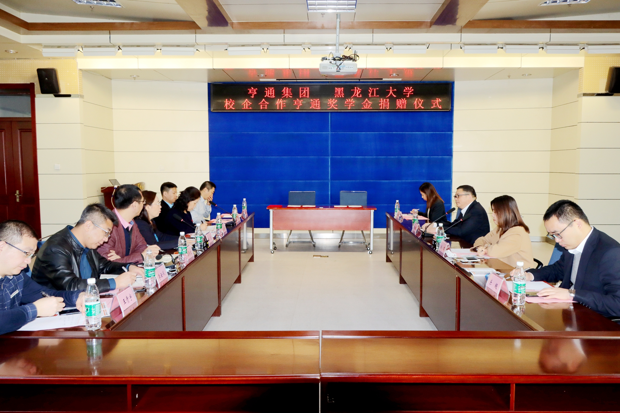 随后,鲍继聪副总裁介绍了企业的发展情况和人才引进措施,表达了与学校进行深入合作的意愿。他表示,人才战略是亨通四大战略之一。学校在办学理念等方面与亨通公司十分契合,学校培养的毕业生在公司发展的很好,很受器重。他也希望双方在人才引进、产学研合作、海外人才培养等多方面能开展交流合作。同时,他也向学校发出邀请,欢迎更多黑大学子到亨通就业,欢迎我校老师到企业参观,期待双方能保持长久的合作和友谊。