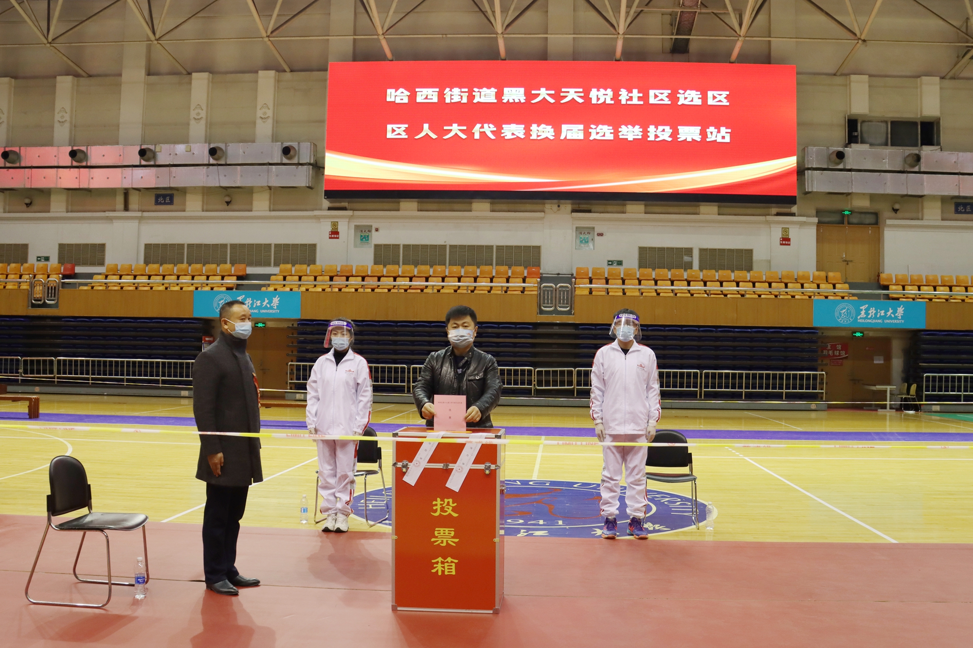 按照南岗区人大换届选举的整体工作部署,10月30日南岗区人大代表换届选举黑大社区选举投票工作在我校体育馆举行。全校师生选民共计920人参加了选举大会,副校长李卓参加选举投票。